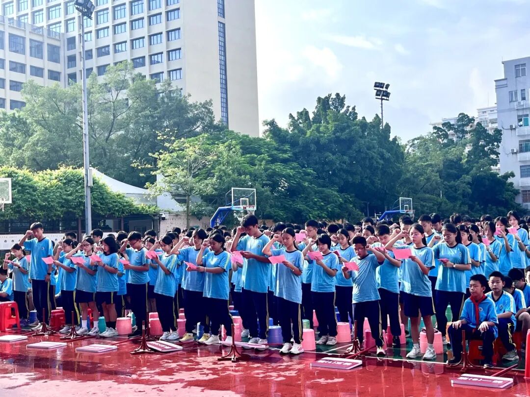 铮铮誓言,铿锵有力。学生代表黄一雯带领九年级全体同学庄严宣誓,充分展示了学子对理想的坚定信念,同学们背负着师长的希望,承载着自己的梦想,迎着中考的曙光,以奋发之心、自律之行,同心协力逐梦。