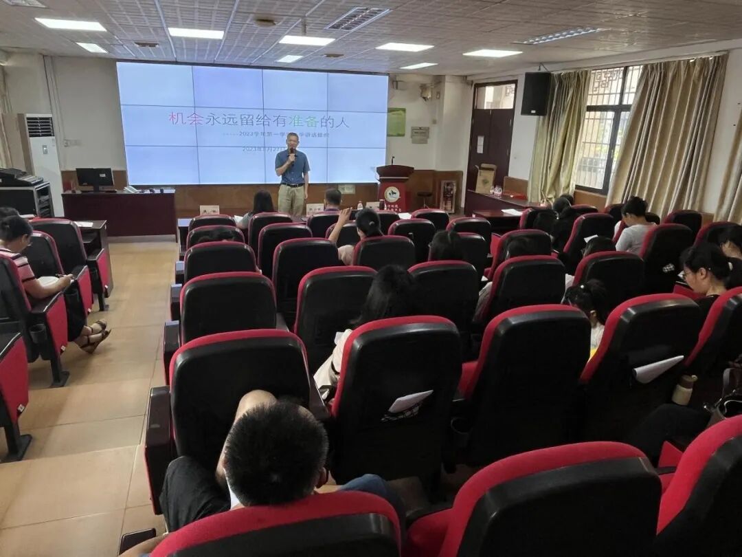 接着,陈瑞校长从教师如何更好成长出发作了题为《机会永远留给有准备的人》的主题报告。