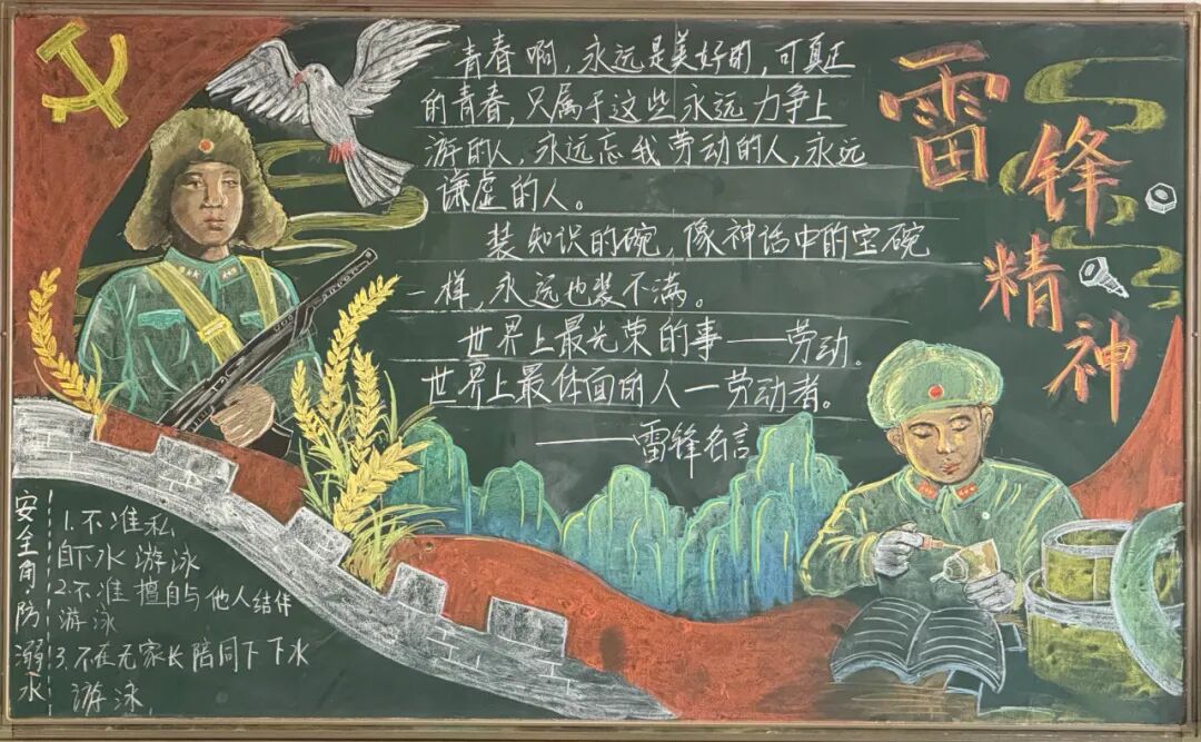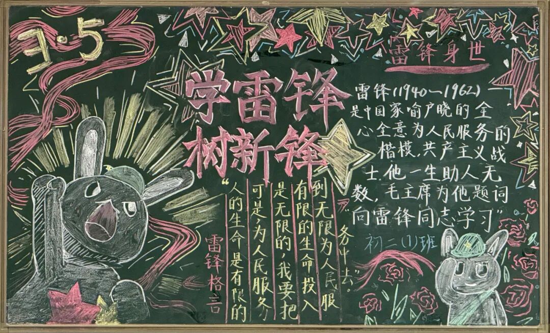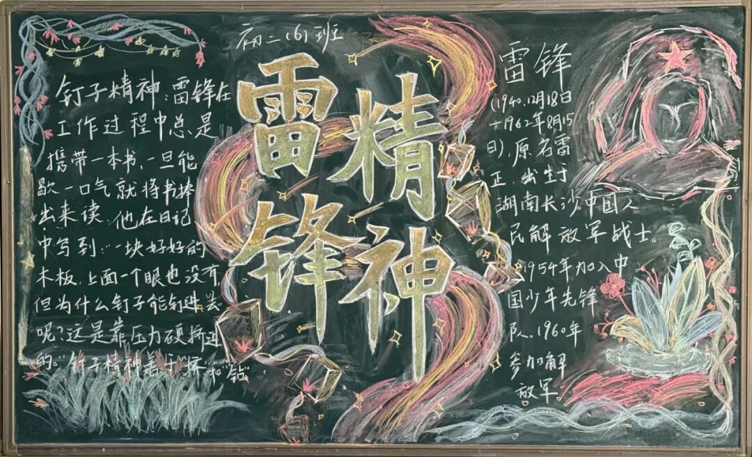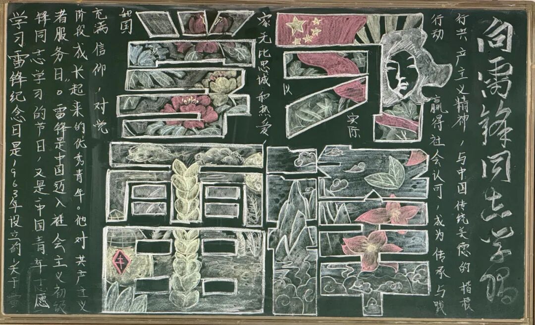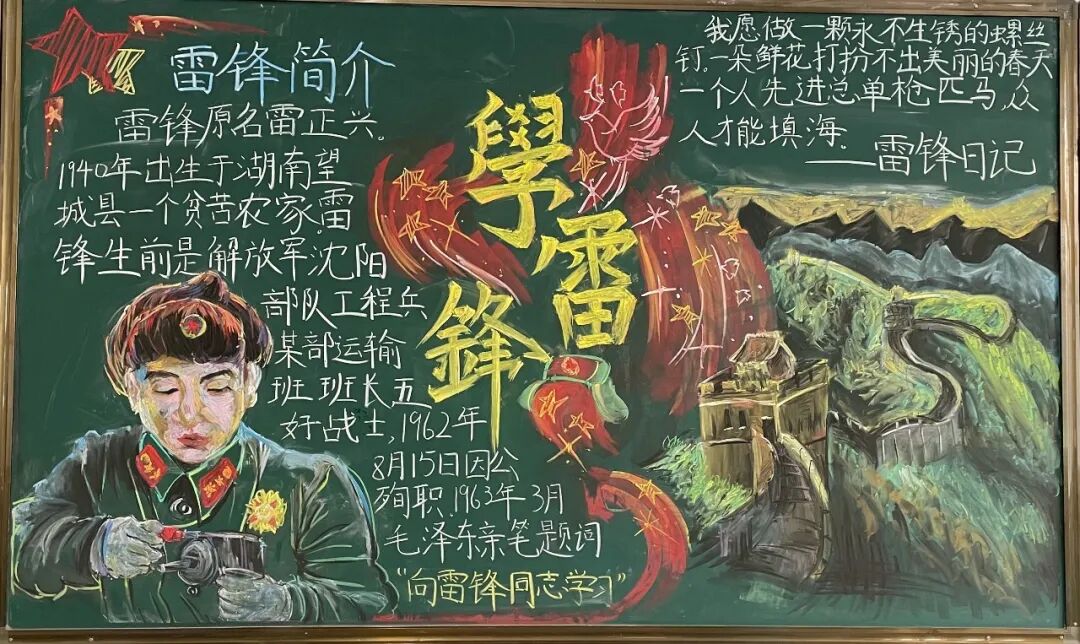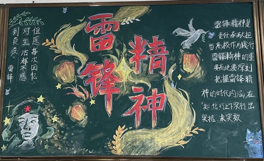 为进一步弘扬雷锋精神,大力营造学雷锋活动氛围,3月3日-31日,学校组织各班学生开展“雷锋精神代代传”主题黑板报活动。全校学生热情参与,用缤纷色彩与创意设计,将雷锋故事与奉献精神融入方寸黑板,绘就了一幅幅充满青春力量的“锋”景画卷。