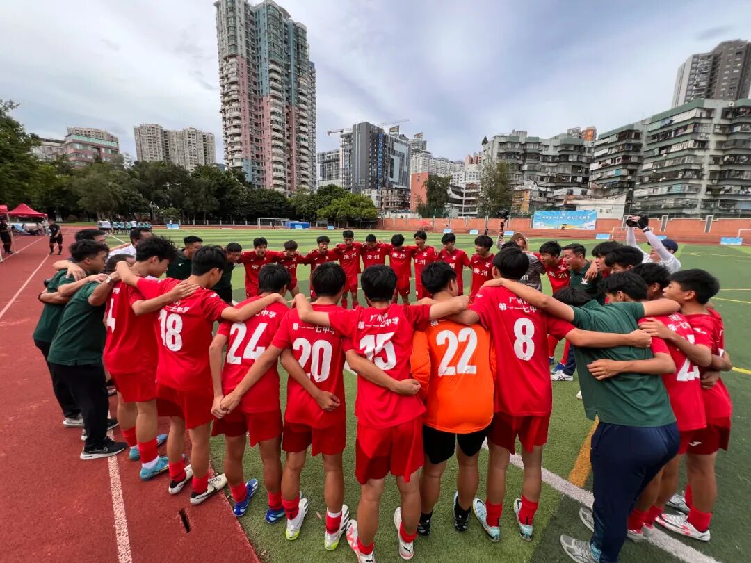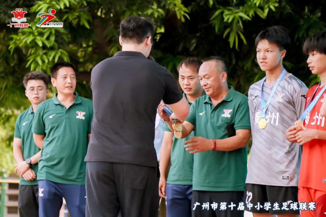 下半场第32分钟,我方组织进攻,球从左侧转移到右侧詹智杰的脚下,形成一对一的局面,恰好詹智杰身边没有对方球员给到及时的压力,使得他有足够的时间观察对方禁区内队友的跑位。彭思玮及时跑位,随着詹智杰的一脚写意弧线传中,越过整条后防线,传向后点,让对方球员措不及防,球精准地落在彭思玮身前,彭思玮后摇蓄力头球,球应声落网,4:1,彻底结束比赛的悬念。随着下半场比赛结束哨声响起,广州市第一一七中学夺得冠军!赛场上的每一粒进球、每一场胜利,都凝聚着队员们的汗水和努力。同时,教练们严密部署、精准指挥,校领导亲临现场、密切关注,家长们殷切期盼、默默支持……这些如同坚实的后盾,为队员们提供了源源不断的动力。