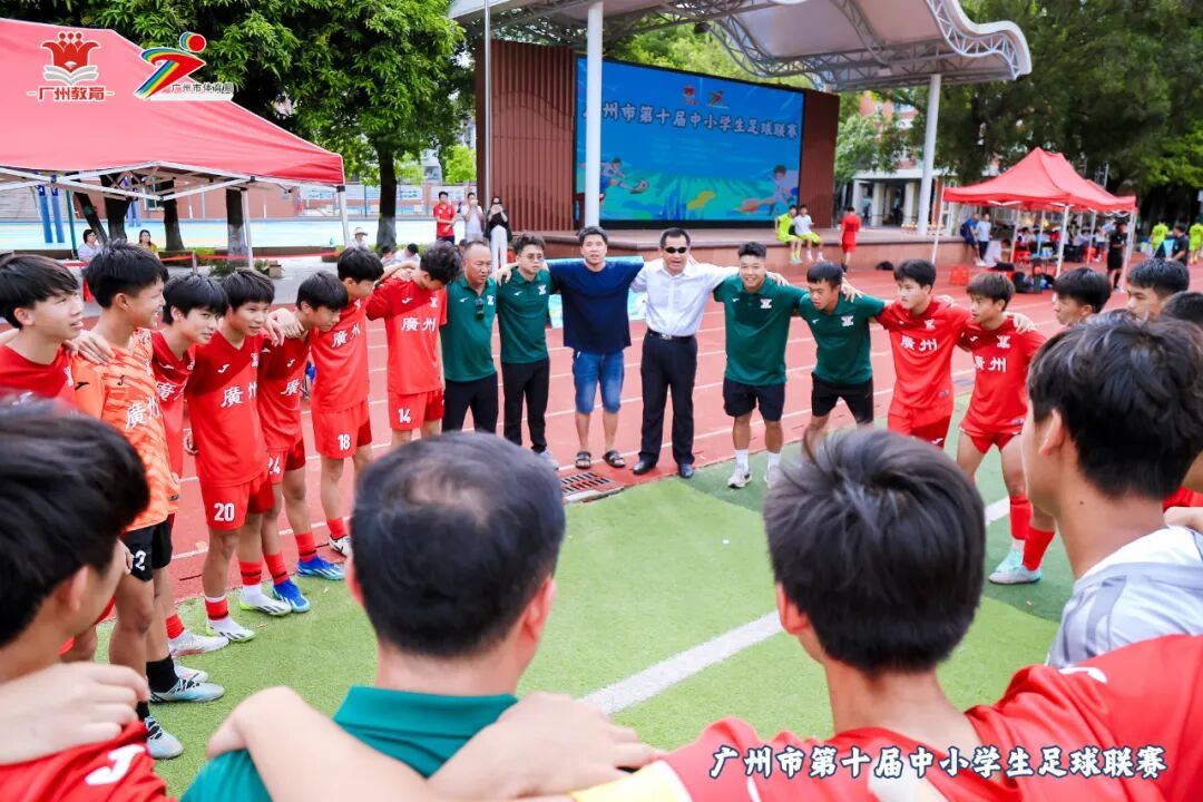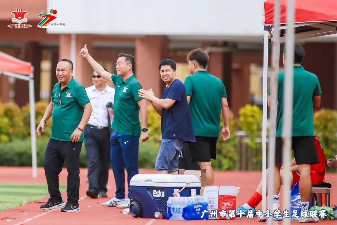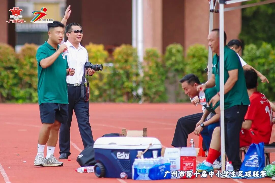 枝繁叶茂、叶绿荫浓的大榕树下,广州市第一一七中学U15足球队的红衣小将们整装待发,奔赴硝烟四起、热辣滚烫的决赛赛场。他们的学长们连续三年夺冠,对他们而言既是鼓舞也是压力。深知他们的不安,家长们齐齐现身赛场为孩子们加油助威;学校党支部书记张佐言也背着单反相机出现在了现场。![]()