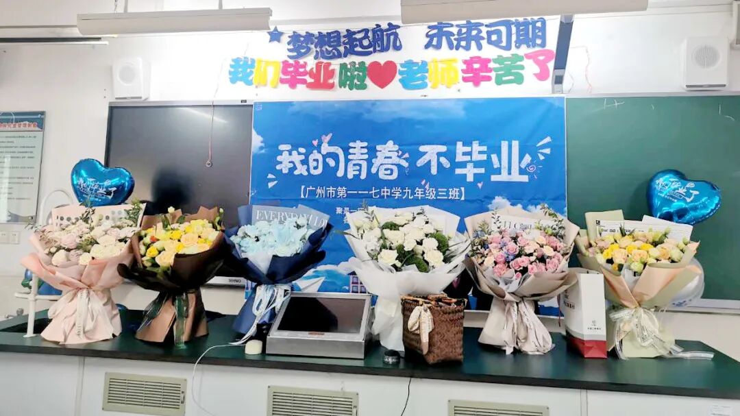 7月2日中午,广州市第一一七中学初三毕业班学生在各自班级里举办了温馨的毕业聚餐活动。初三学子与家长、老师们欢聚一堂,共享美味佳肴,畅聊过去,展望未来,在阵阵欢声笑语中传递美好的祝愿。