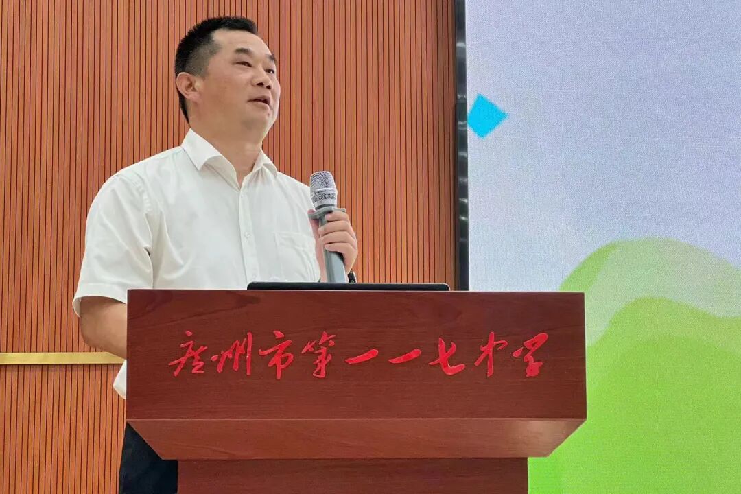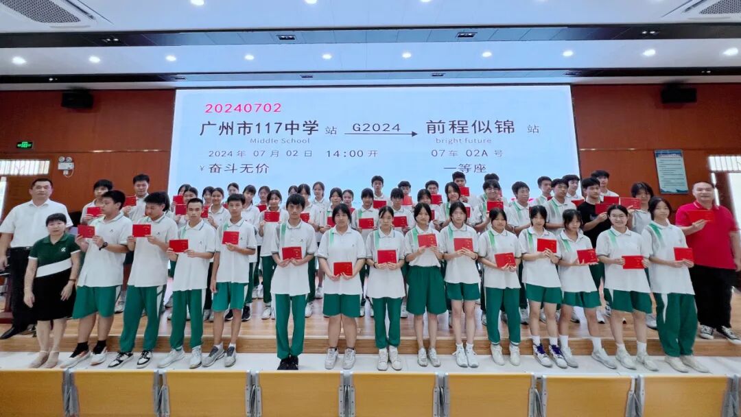 7月2日下午,广州市第一一七中学隆重举行了“青春不散场 梦想正起航”2024届毕业典礼,为即将踏上人生新里程的毕业学子们送上真挚的祝福。学校党支部张佐言书记、德育处李琳主任、教导处李展雄主任、办公室周维主任、工会胡爱民主席、全体初三教师以及家长代表共同见证了这场青春盛典。典礼活动由级长赖选容主持。