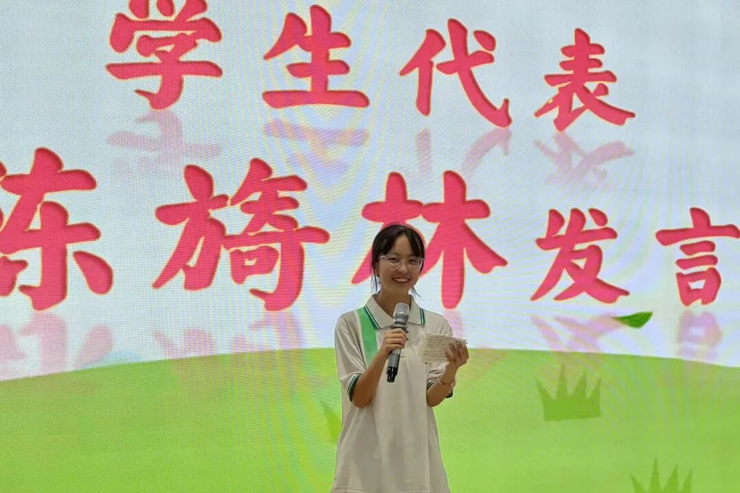 时光如白驹过隙,转眼间,在一一七中的三年求学之路已近尾声。毕业生代表陈旖林发表感言,她回顾了三年来许多珍贵、难忘的瞬间,同时对母校的培养、老师们的教诲、父母的养育、同学的陪伴表达了感激之情。在即将走上人生新征程的分岔路口,陈旖林同学希望同学们勇敢前行,在未来的人生旅途中学有所成、实现自我,并祝愿母校桃李满园、再续华章。