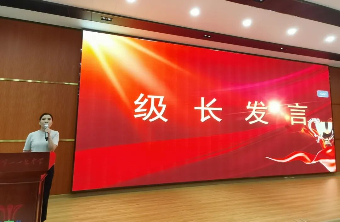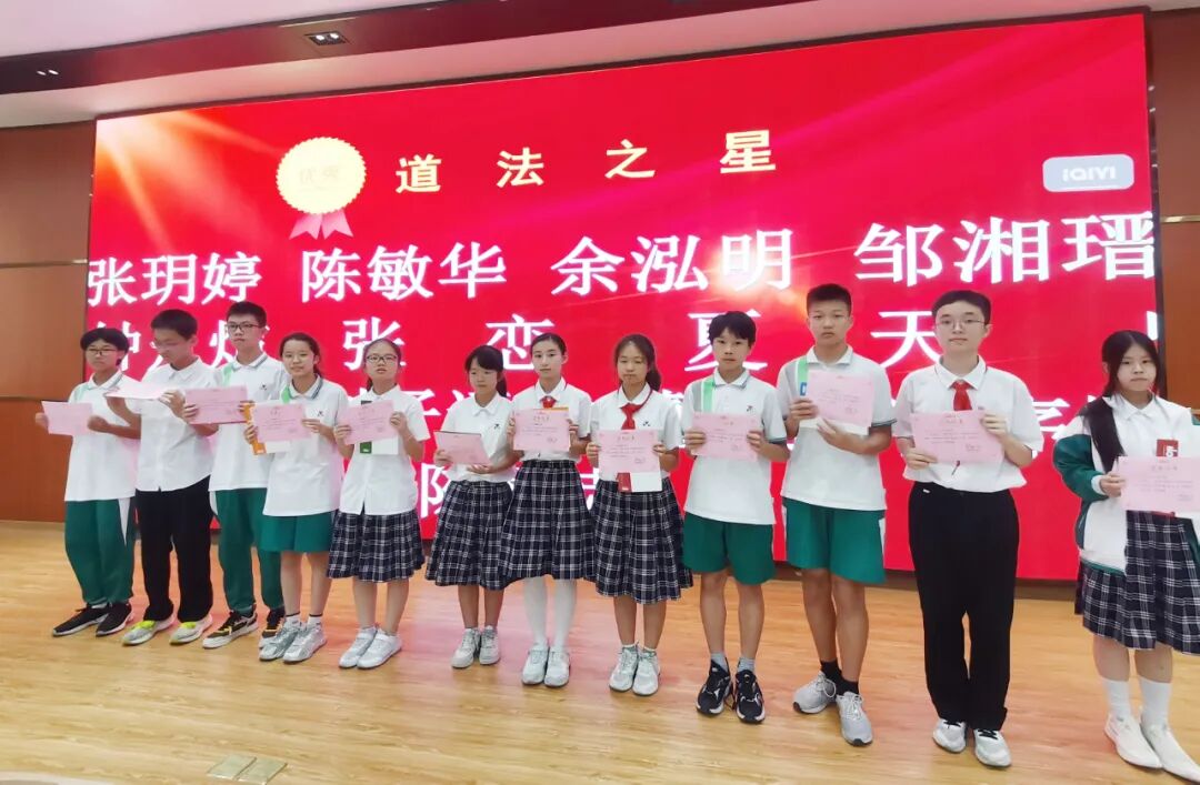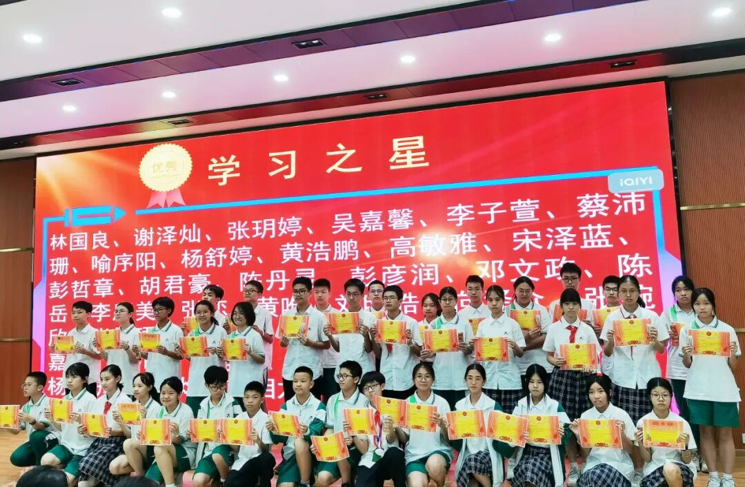 班级家长会后,同学们来到报告厅参加期中表彰大会。大会的目的在于表彰优秀、激发动力,充分调动全体学生的学习积极性。会议由初一(8)班刘馨雨、谢泽灿同学担任主持。李主任和王级长为获奖学生颁奖。