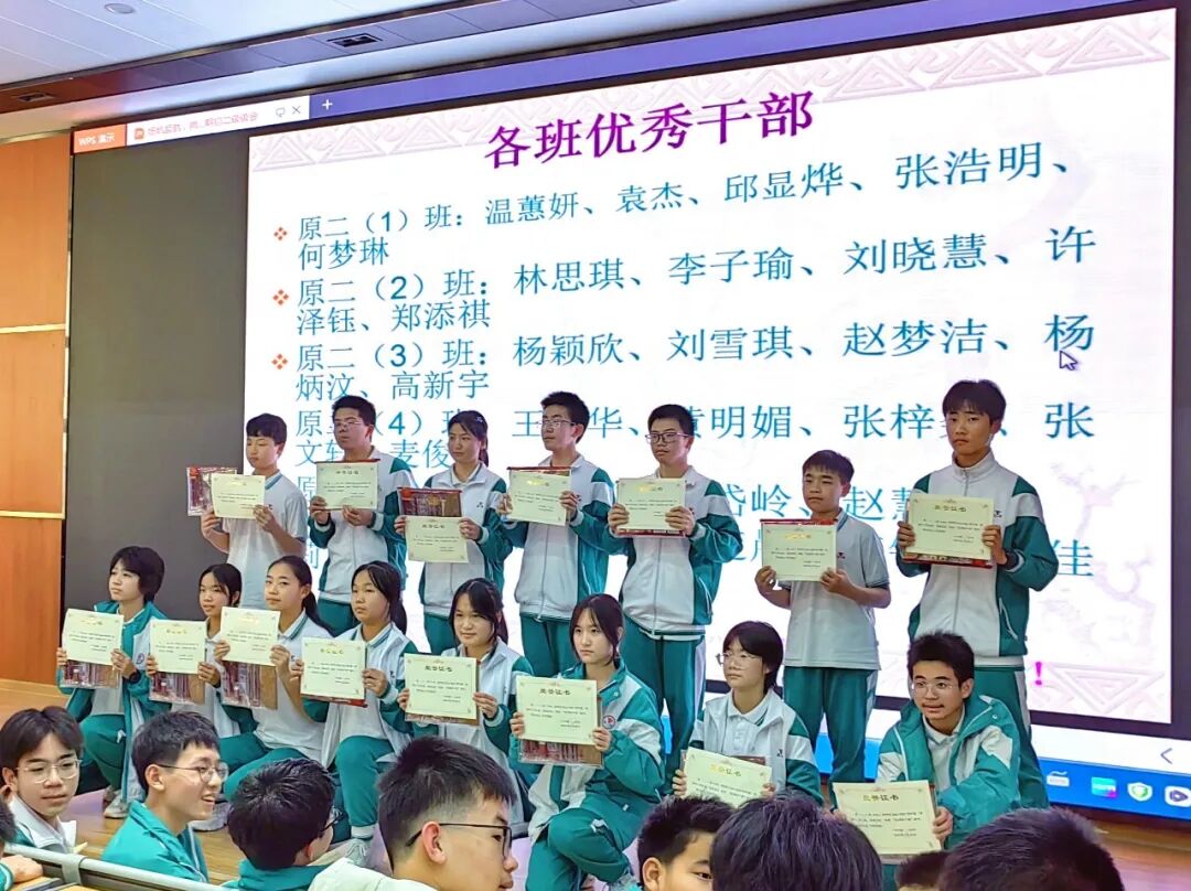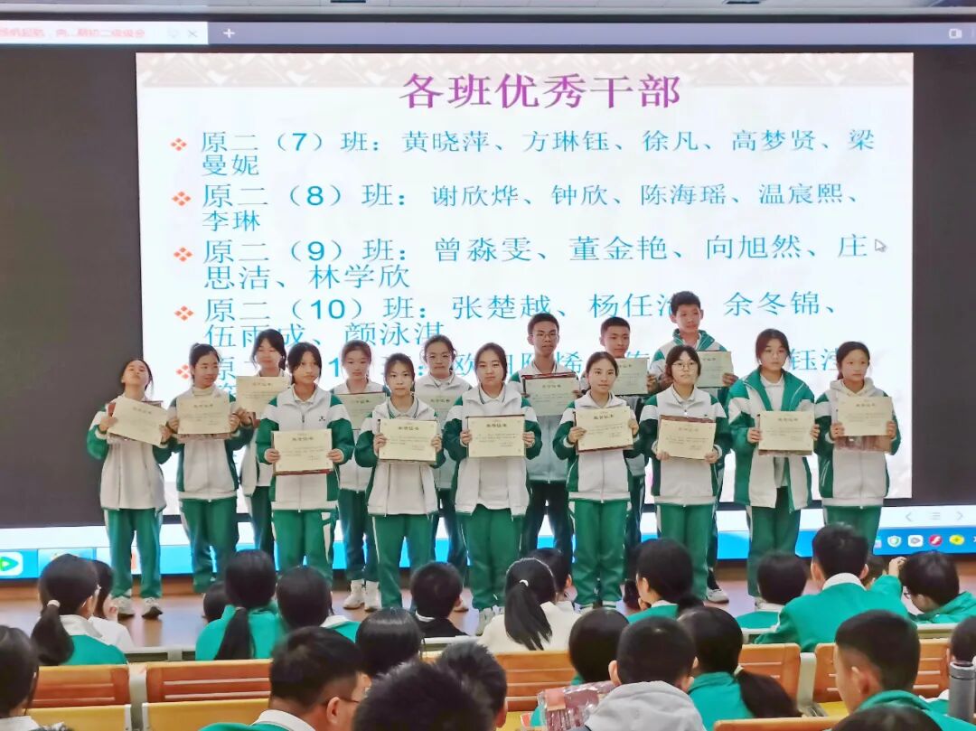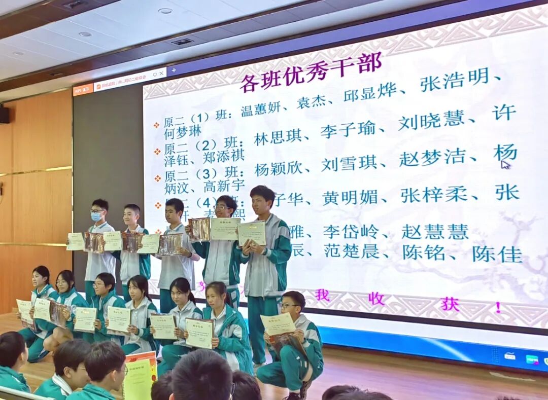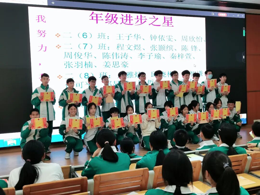 各班班主任为年级学习标兵、学习之星、进步之星、各班优秀班干部进行颁奖表彰,以此激励同学们在新学期继续努力学习,不断超越自我。
