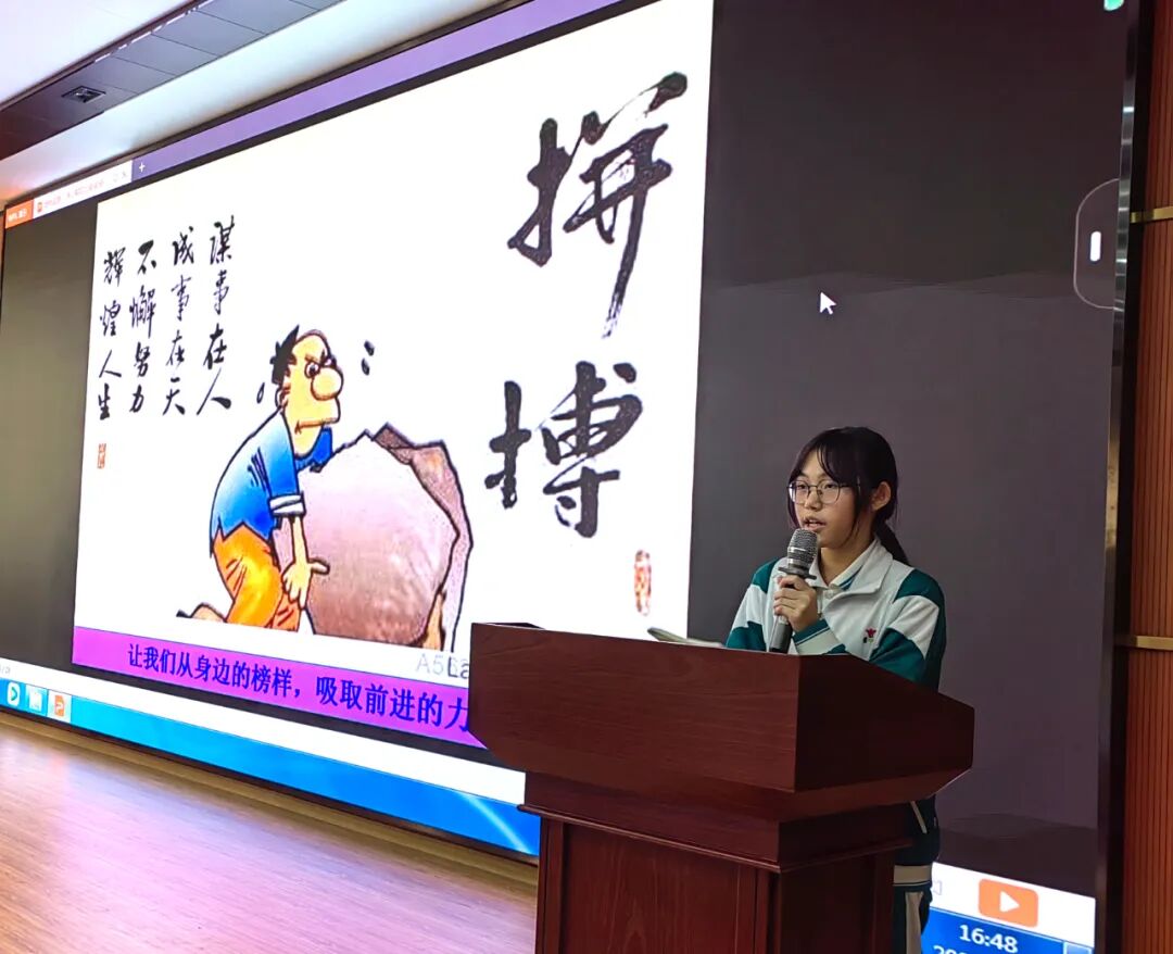 榜样的力量是无穷的。7班的李琳同学和8班的李诚彪同学做了关于学习方面的经验分享。李诚彪同学从如何培养学习兴趣、怎么掌握科学的学习方法以及如何更加有效地学习各学科三方面,分享了自己的学习心得与方法;李琳同学则分享了她关于预习与复习的方法。相信两位优秀同学的倾囊相授能帮助在场同学乘着理想小船,高效航行在知识的汪洋中,最终到达成功的彼岸!