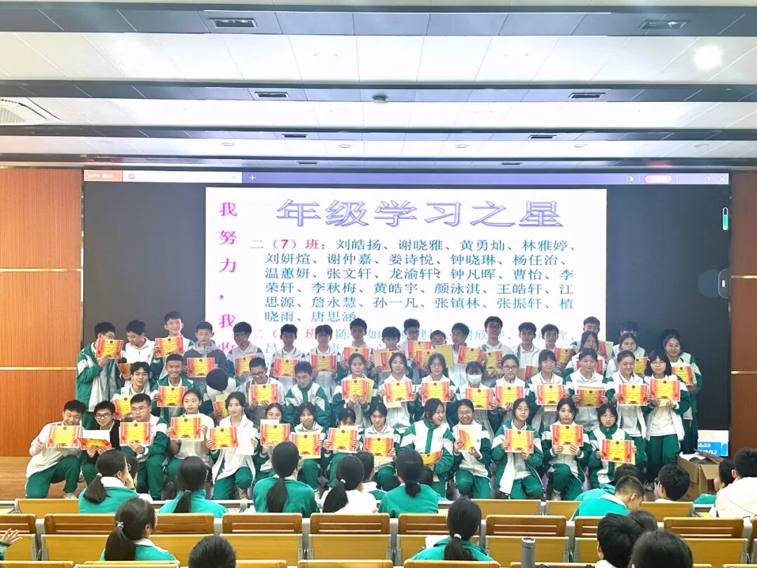 路虽远,行则将至;事虽难,做则必成。本次年级级会不仅是一次表彰优秀学生的集会,更是一次鼓舞全体初二同学士气的精神盛宴。相信同学们会以坚定的信念和顽强的拼搏精神 ,踔厉奋发、笃行不怠,更加自信、从容地面对即将到来的初三生活,乘风破浪、勇往直前!