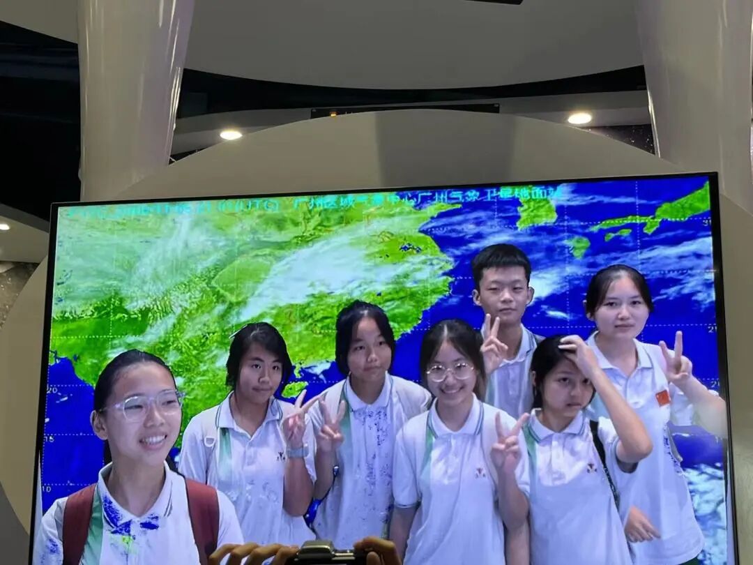 在互动体验馆,同学们体验了小小天气预报模拟室,变身天气预报员,以及熟悉气象卫星的具体运行业务。