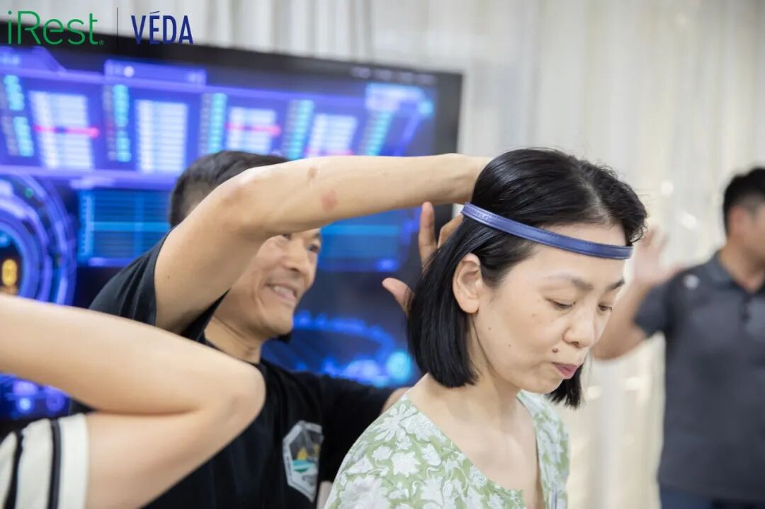 除了在指引下完成练习外,6月9日,在专业人员的指导下,学员们还在iRest的实践过程中体验了Brainlink头戴式脑电波传感器,在专业设备的支持下,一起用科技了解脑电波的活动情况。