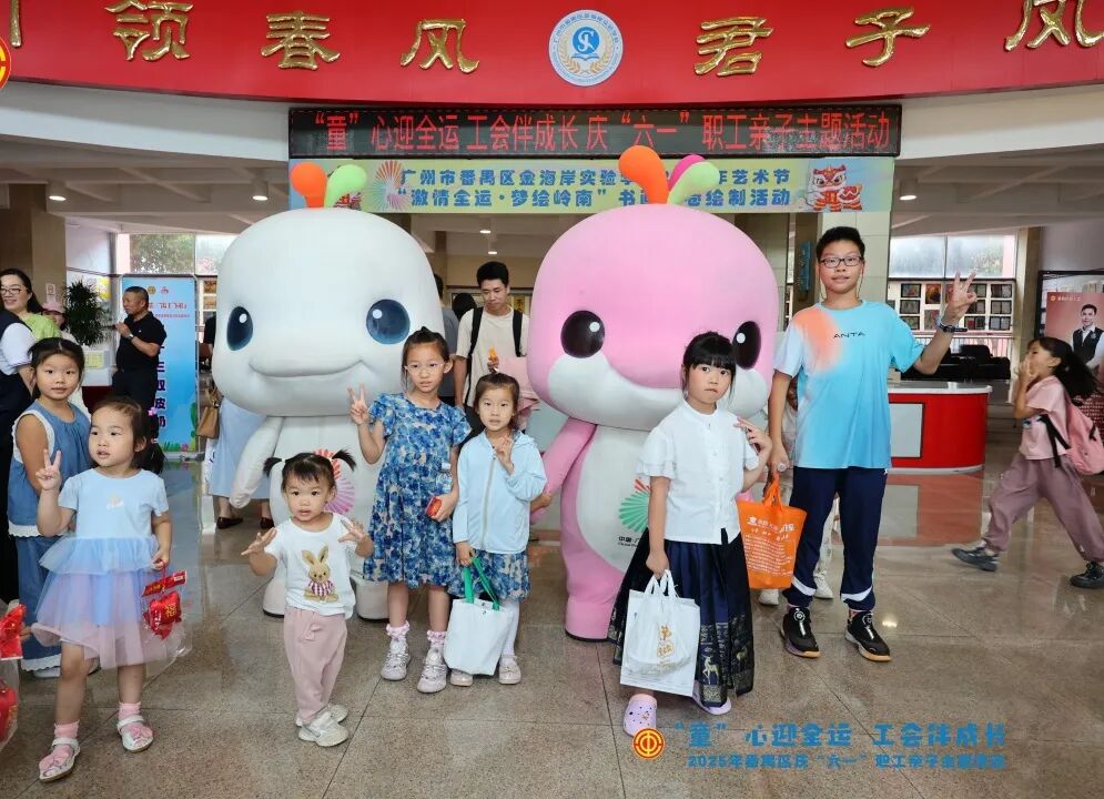 5月31日上午,番禺区总工会、大龙街总工会、番禺区工人文化宫等联合在金海岸实验学校举行“‘童’心迎全运 ·工会伴成长”2025年番禺区庆“六一”职工亲子主题活动,近500名家长和孩子参加活动,共度趣味时光。