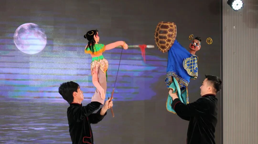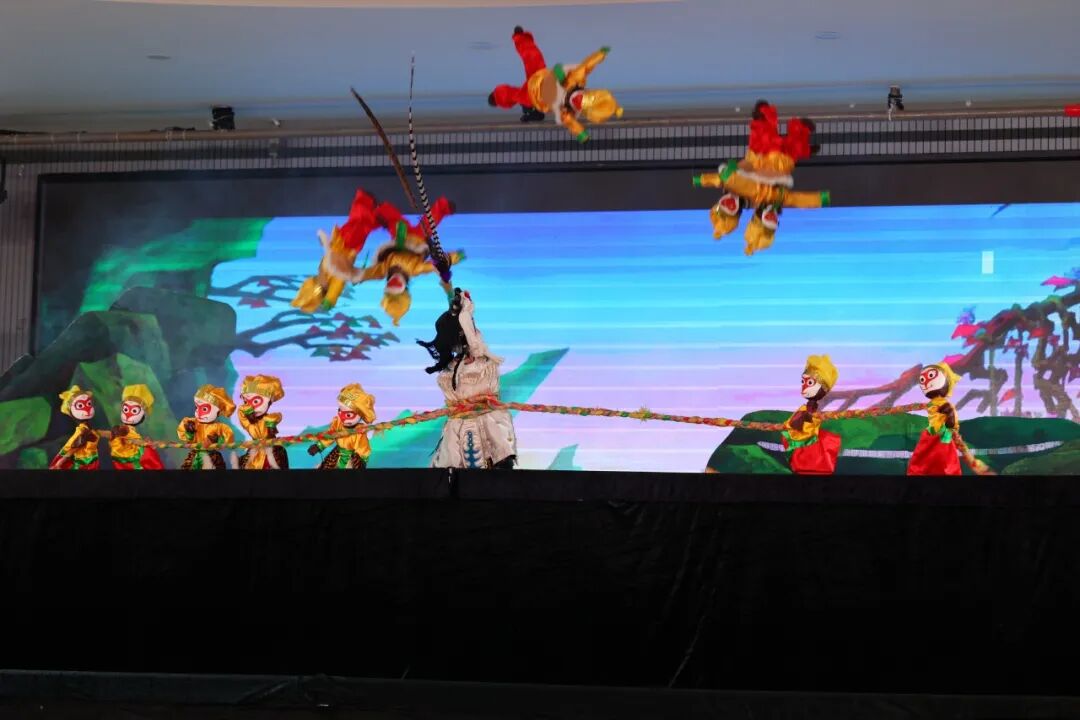 木偶戏台下,孩子们目不转睛,被木偶的精彩表演深深吸引。