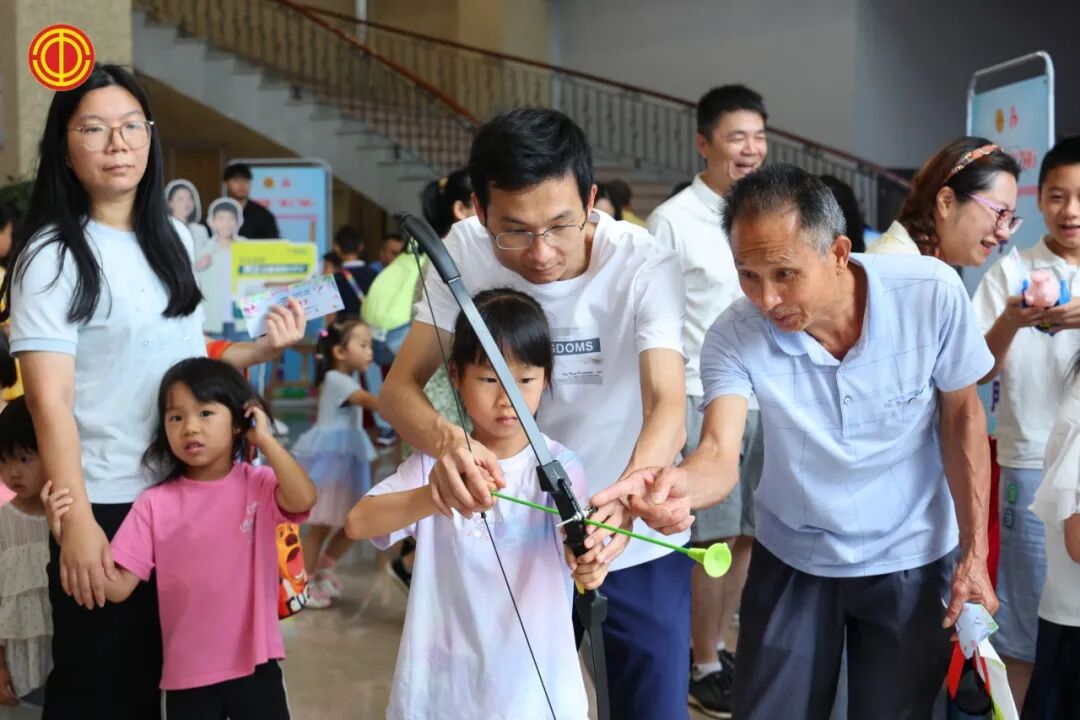 互动游戏区,家长和孩子们齐心协力,欢声笑语回荡在校园。