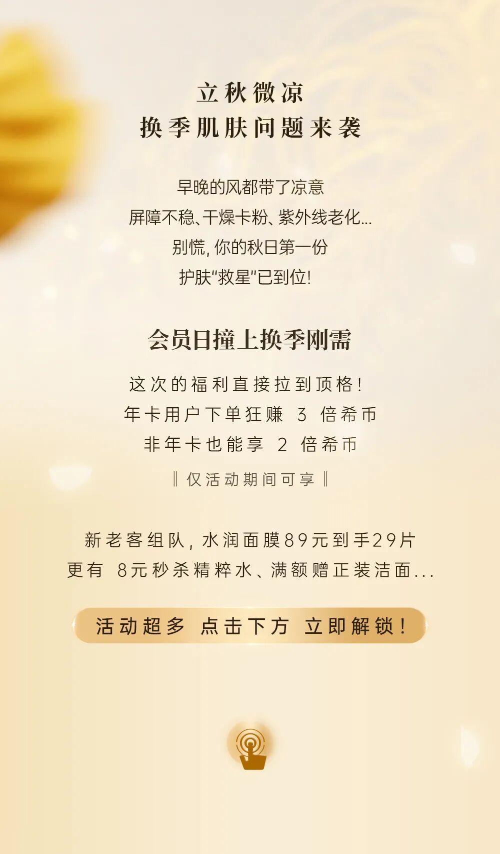摘要:给你的秋季第一份护肤关怀,会员专享错过血亏