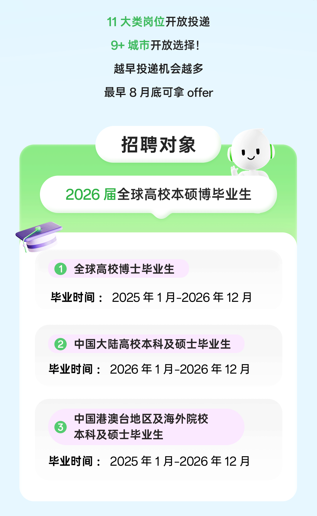 摘要:11大类岗位开放投递,9+城市开放选择!