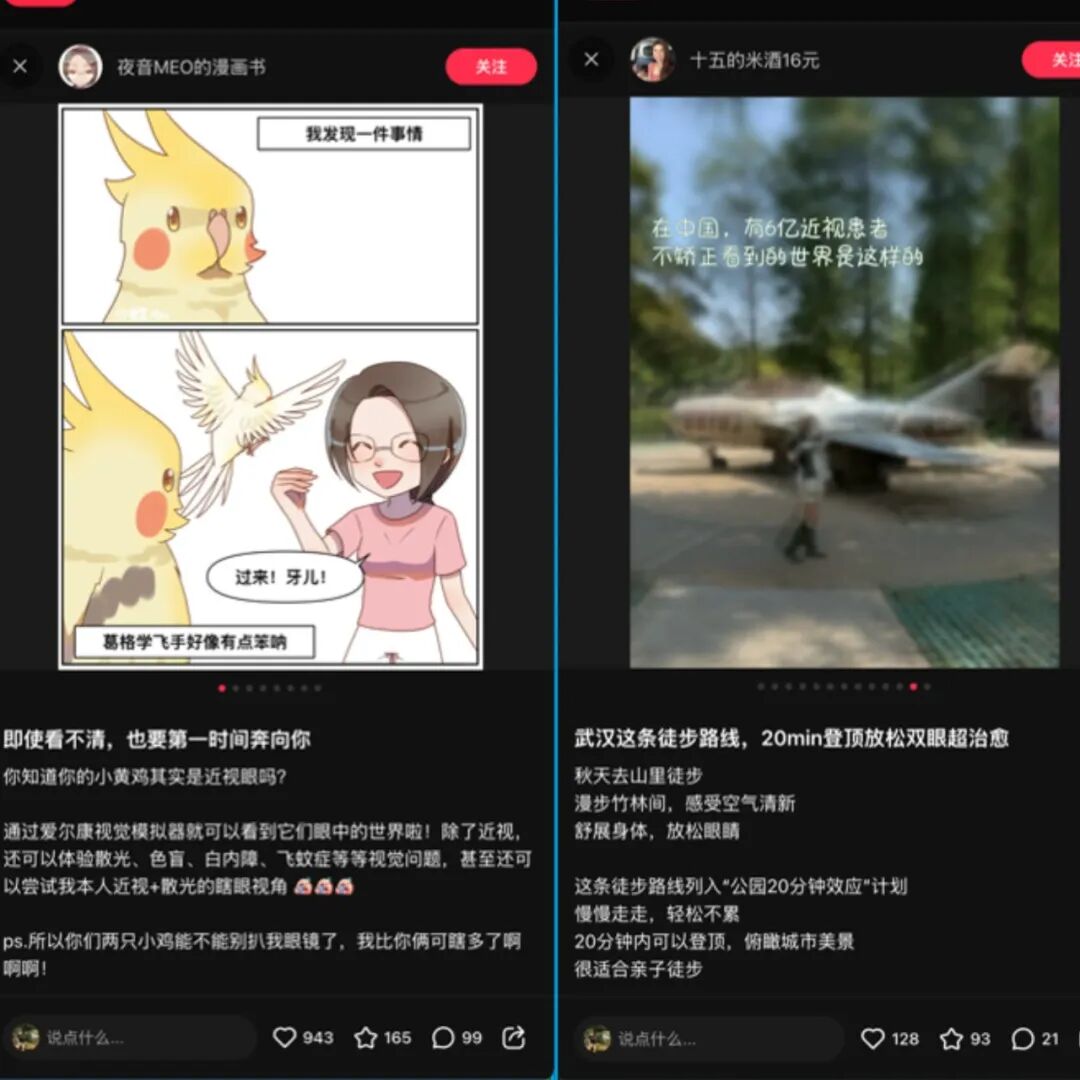 顺应移动化浪潮,视觉模拟器是是一款基于H5和深度学习的创新工具,旨在提高公众对视力疾病的认识。它模拟九种常见眼疾:近视、远视、散光、白内障、飞蚊症、青光眼、红绿色弱、红绿色盲和全色盲,让用户体验不同程度的视觉障碍,并展示爱尔康的人工晶体和个性化屈光矫正技术。