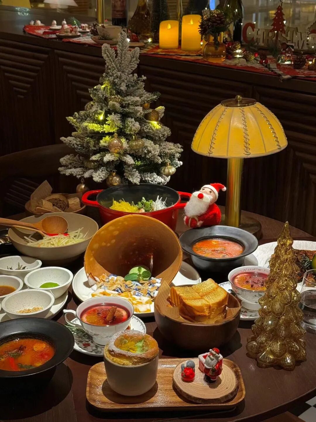榴莲舒芙蕾配冰淇淋、圣诞热红酒等等