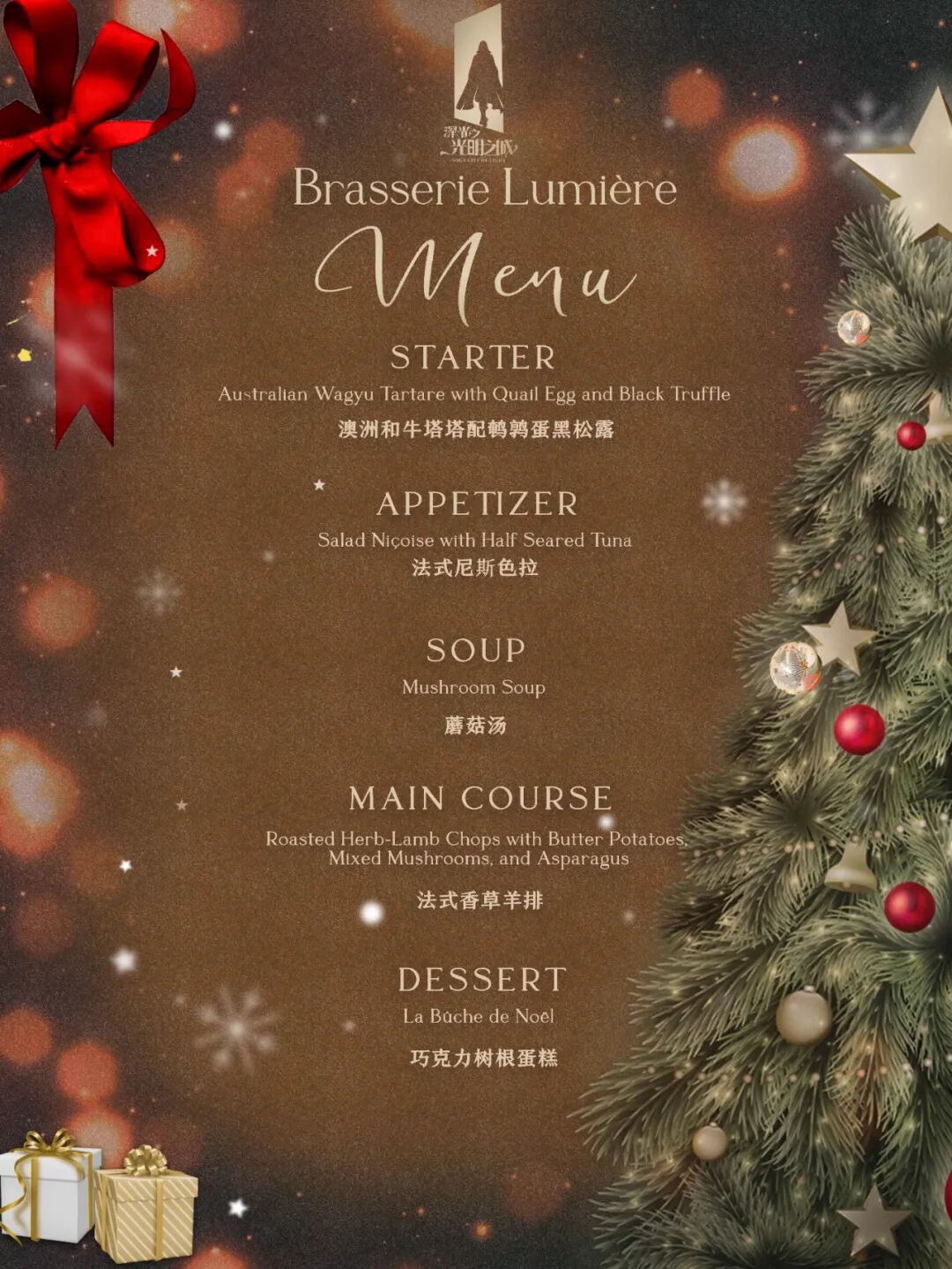 人民币仅486元/人,法式五道式圣诞套餐