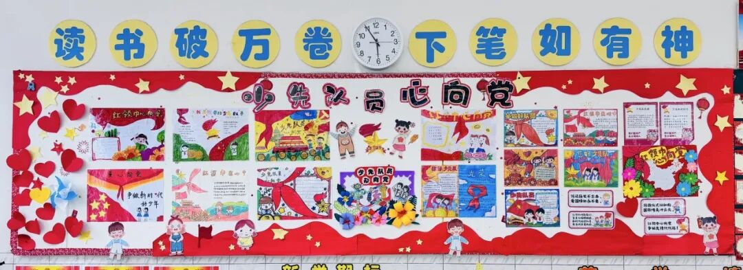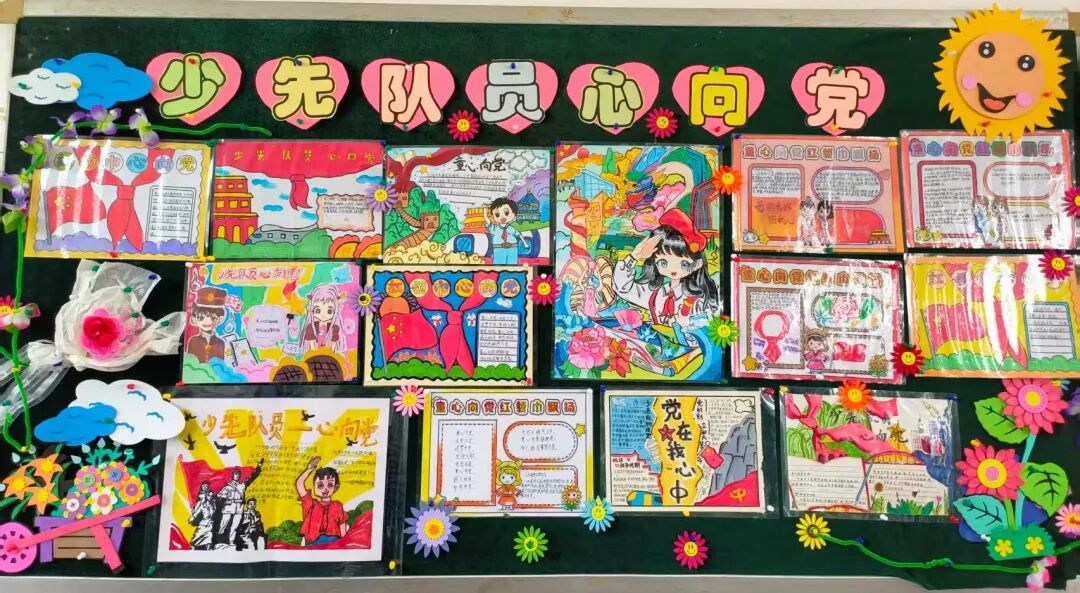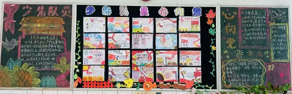 六月初,各班级以班会课为契机,深入挖掘班级文化内涵,共同绘制了一幅幅生动多彩的班级文化画卷。黑板报化身为传播红色文化的窗口,低段班级以队史为墨,高段班级以党史为魂,一笔一画间,学子们对红色文化的热爱与传承跃然纸上。大队部的细致评比不仅是对学子辛勤付出的肯定,更在他们心中种下了对党史文化的认同与自豪的种子。