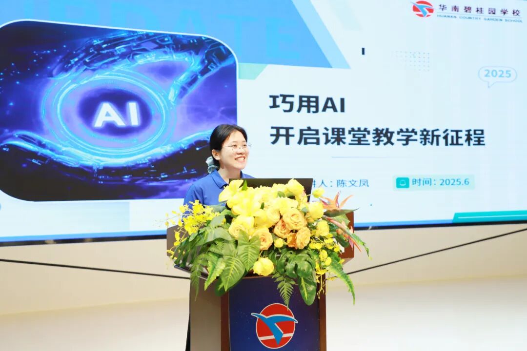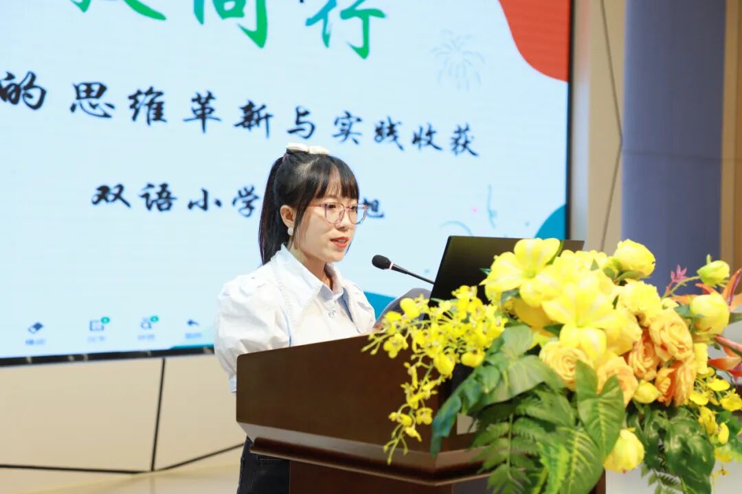 双语小学陈文凤老师以《巧用AI,开启课堂教学新征程》为题,从AI场景搭建、智能交互学习、智能网页编写等三方面介绍AI在课堂教学中的应用,强调AI与数学、科学教学的深度融合。