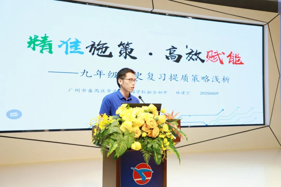 融合初中林建宇老师以《精准施策·高效赋能——九年级历史复习提质策略浅析》为题,分享九年级历史复习提质策略,涵盖精准规划、数智助力、情境教学、分层辅导,以国家中小学智慧教育平台的应用和人工智能相结合,助力学生学科素养提升和个性化复习方案的制定。