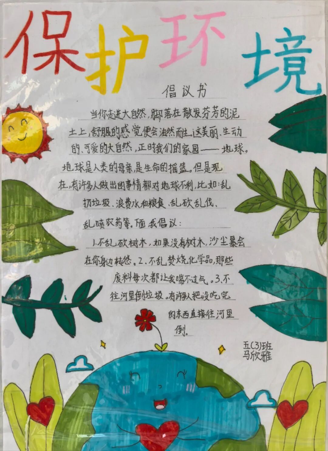 此外,不同年级的学生还根据自己的年龄特点和兴趣爱好,开展了形式多样的环保实践活动。低年级的孩子们用稚嫩的小手制作出了精美的环保书签;中年级的学生则撰写了情深意切的环保倡议书;高年级的学生更是发挥创意,设计出了寓意深刻的环保标语和手抄报。
