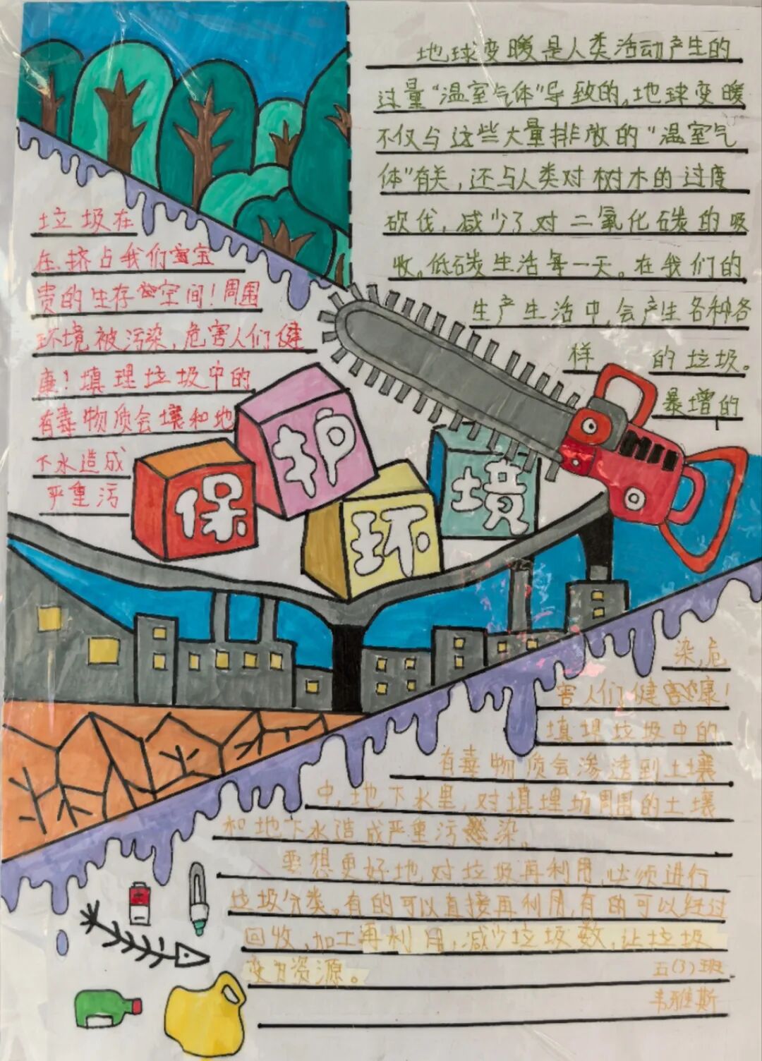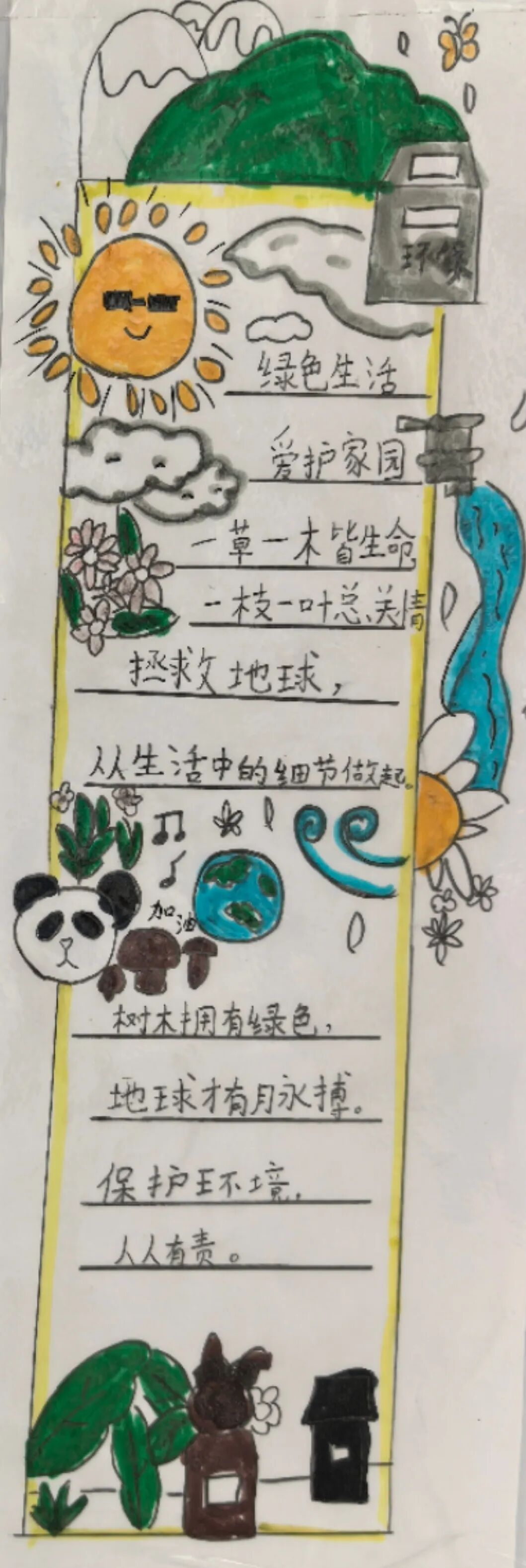 这些作品不仅展示了孩子们的创造力和想象力,更进一步加深了他们对环保的认识和责任感。