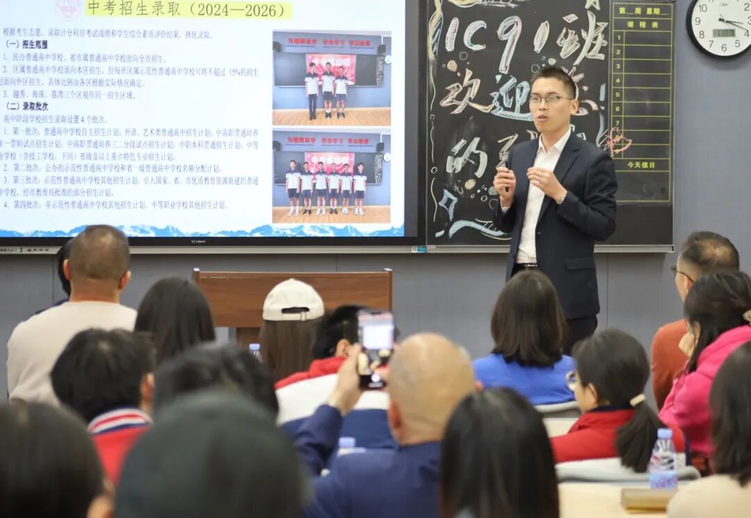 其中,九年级家长会聚焦2025年广州中考。会上,班主任们详细解读了中考规划,帮助家长和学生明确备考方向,还进行了期末考情分析,找出了学生的学习亮点和提升空间。