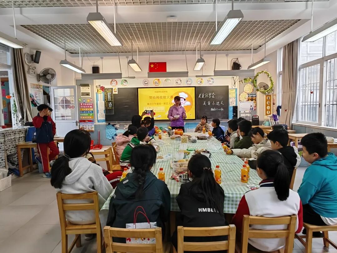 课桌上摆满了琳琅满目的美食,空气中弥漫着诱人的香气。同学们热情地相互分享制作美食的过程,在品尝美食的同时,感受着劳动带来的快乐。大家围坐在一起,欢声笑语不断,班级情谊在分享中愈发深厚。