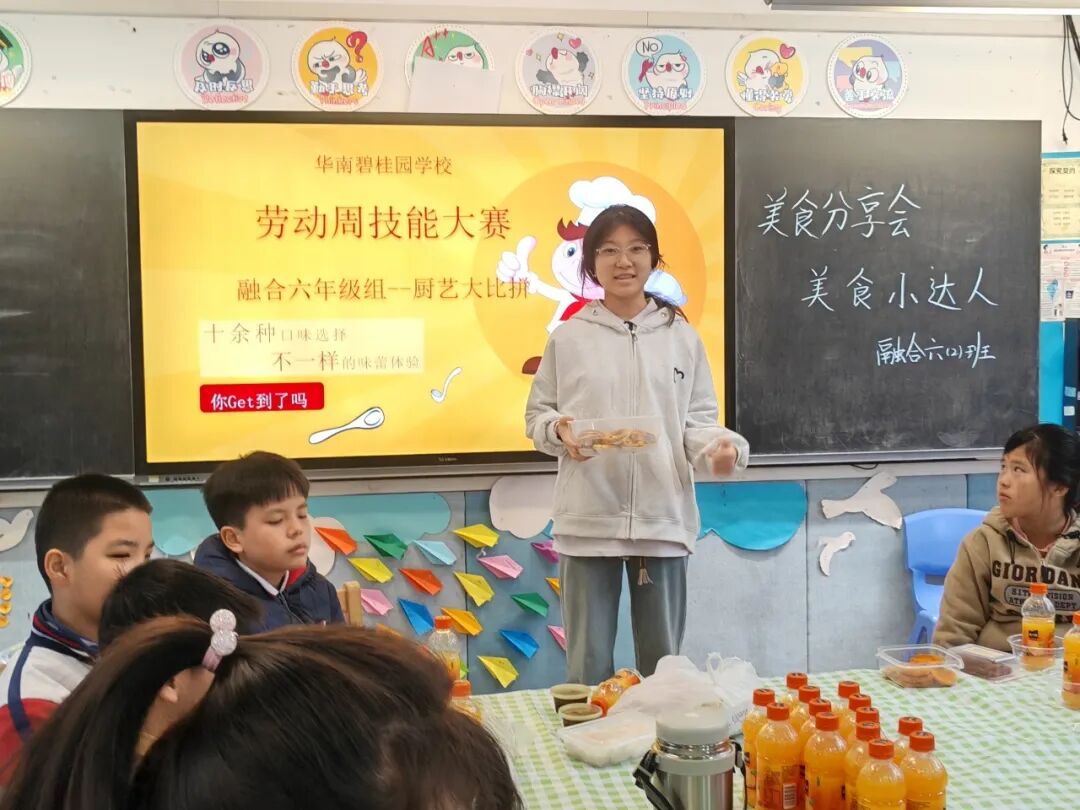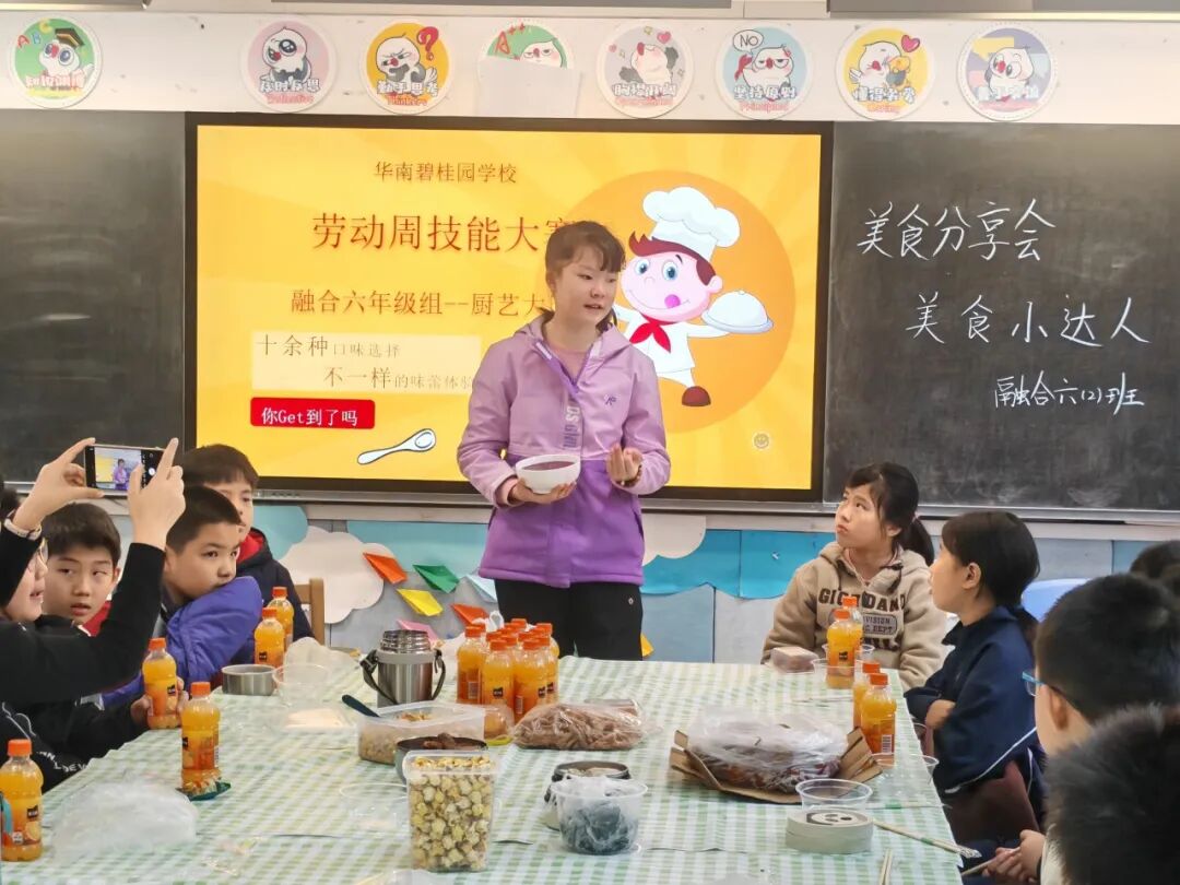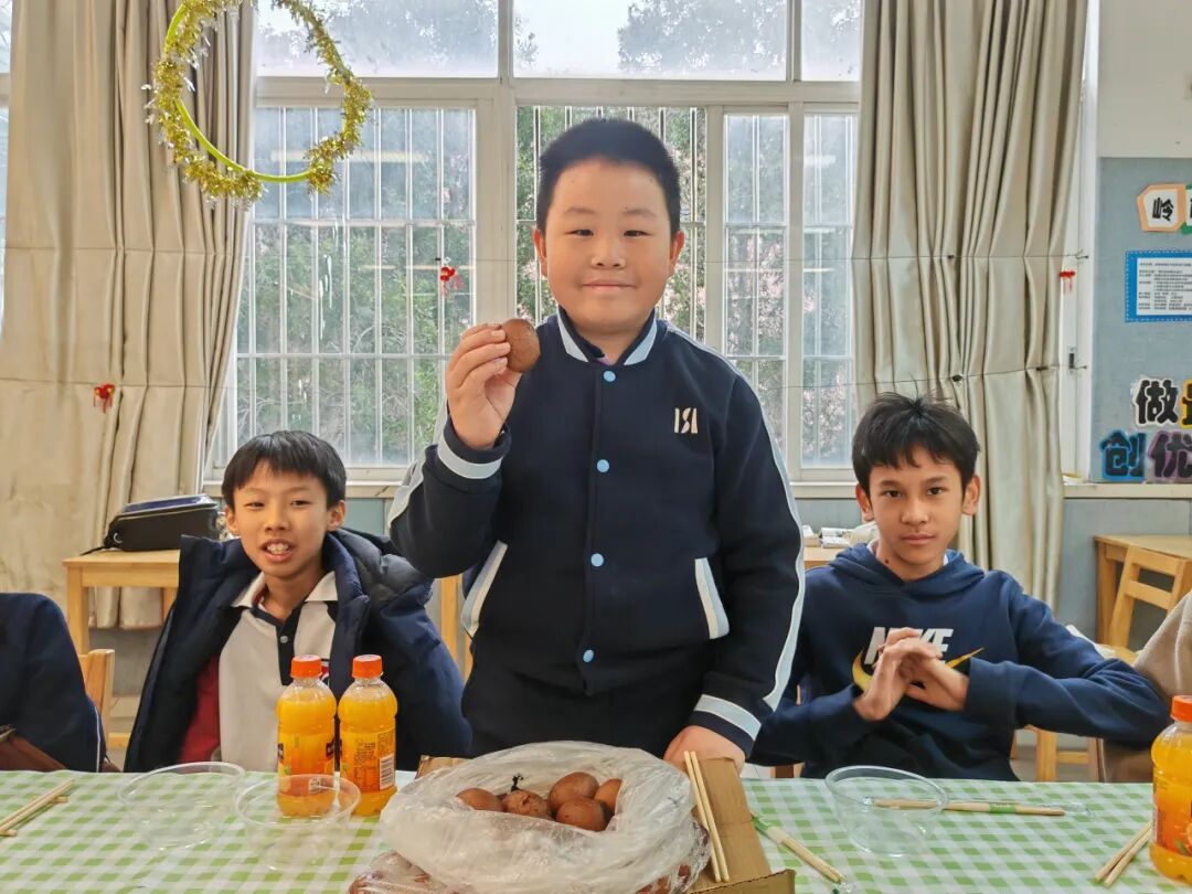六年级活动现场充满了欢乐与温馨。同学们各展身手,精心制作出各种美味的食物。有香甜的蛋挞、美味的南瓜饼、可口的茶叶蛋、香酥的鸡翅、甜蜜的爆米花等。