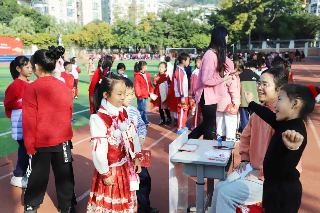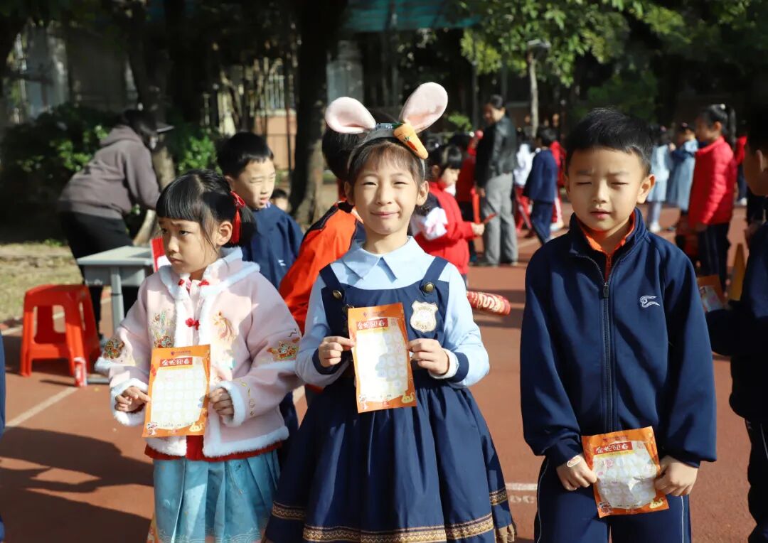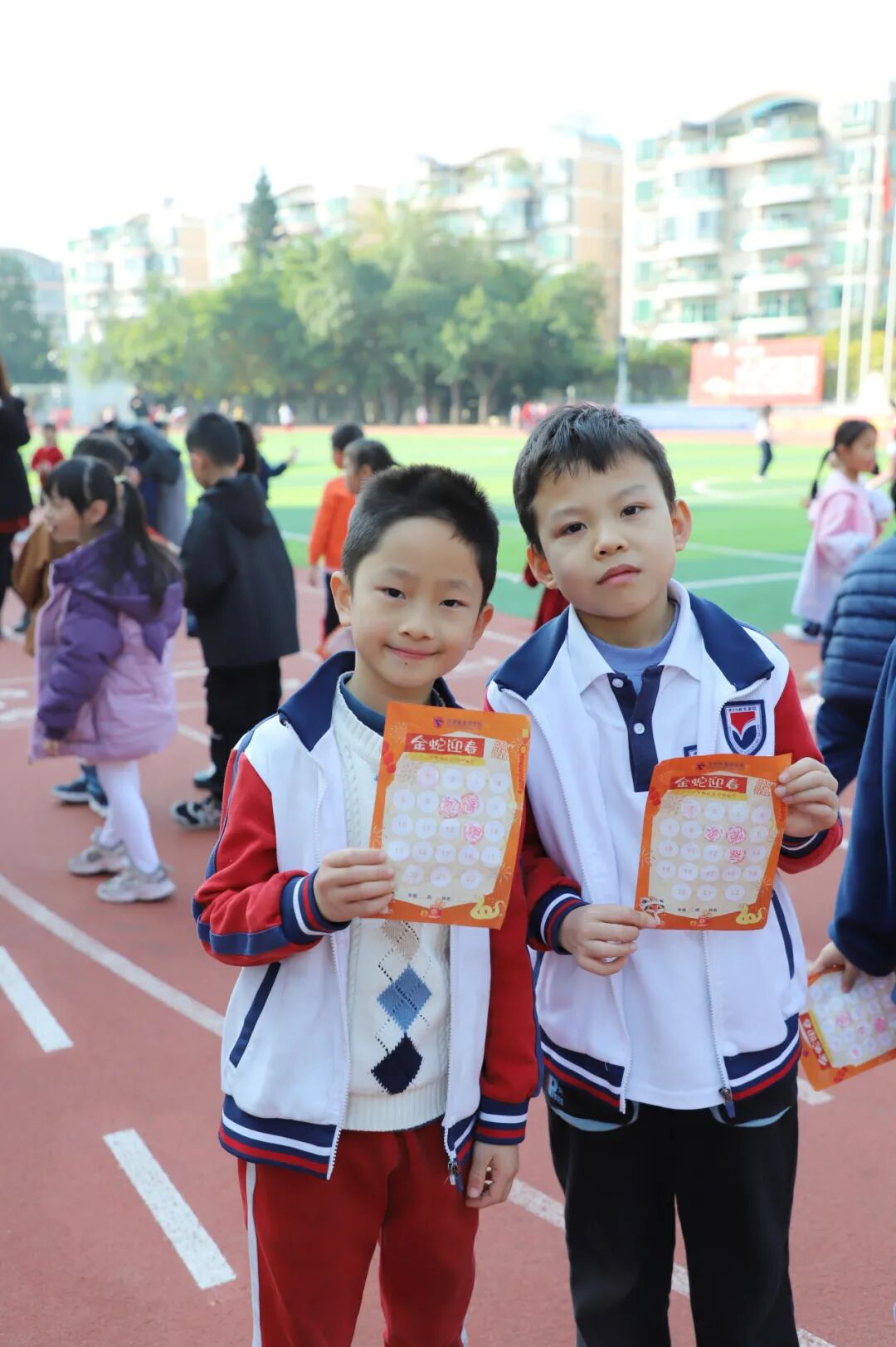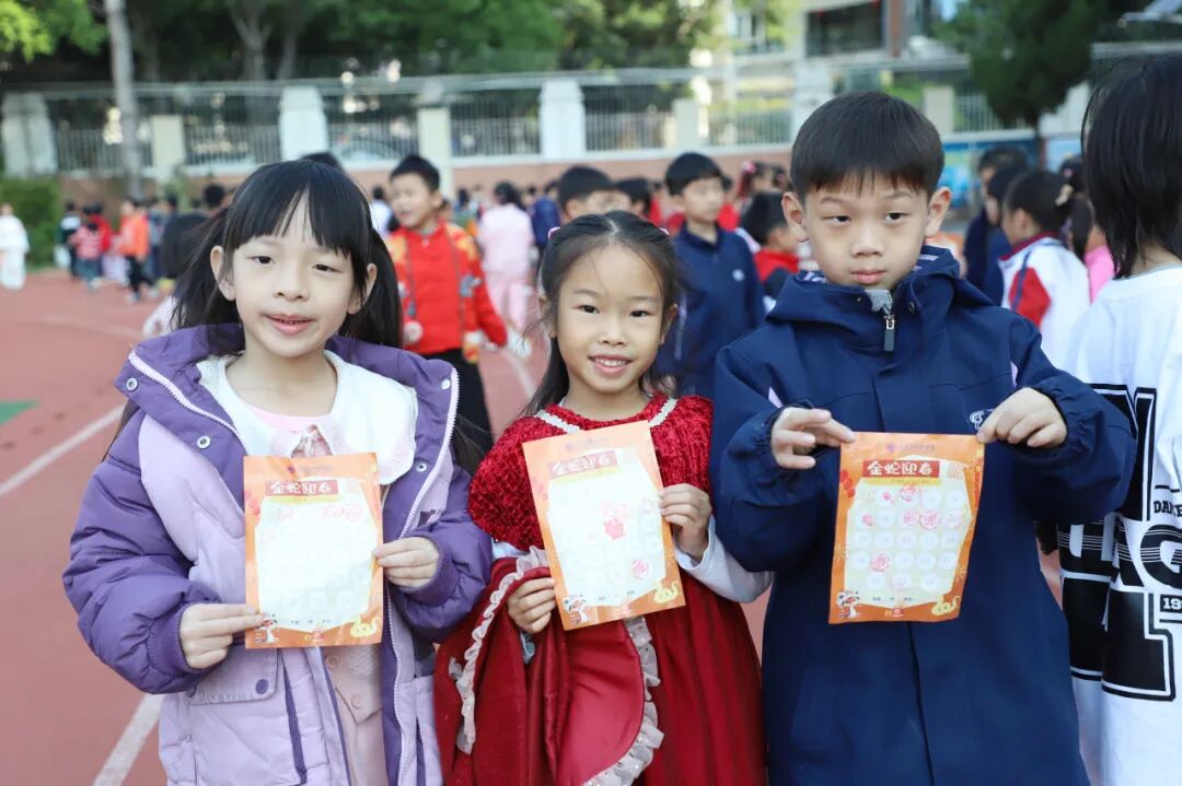 在游园过程中,学生们每完成一个项目即可获得一枚“福”字章。他们兴奋地展示游园卡和满满的“福”字章,脸上洋溢着满足和自豪的笑容。活动结束后,学生们回到班级,用“福”字章兑换奖品,整个校园都充满欢声笑语。