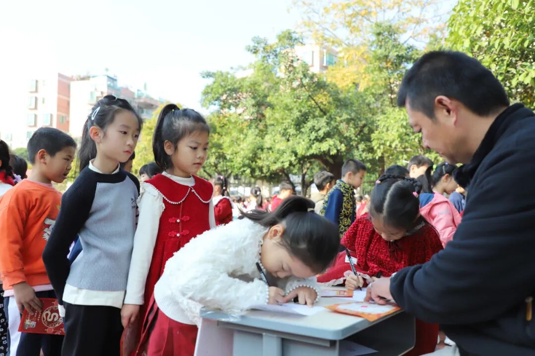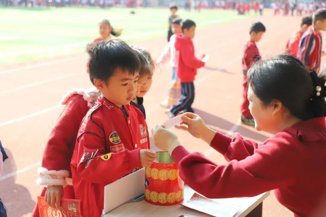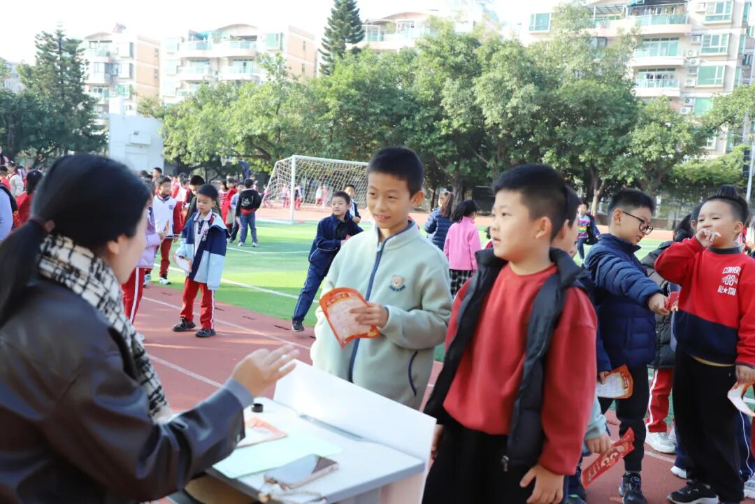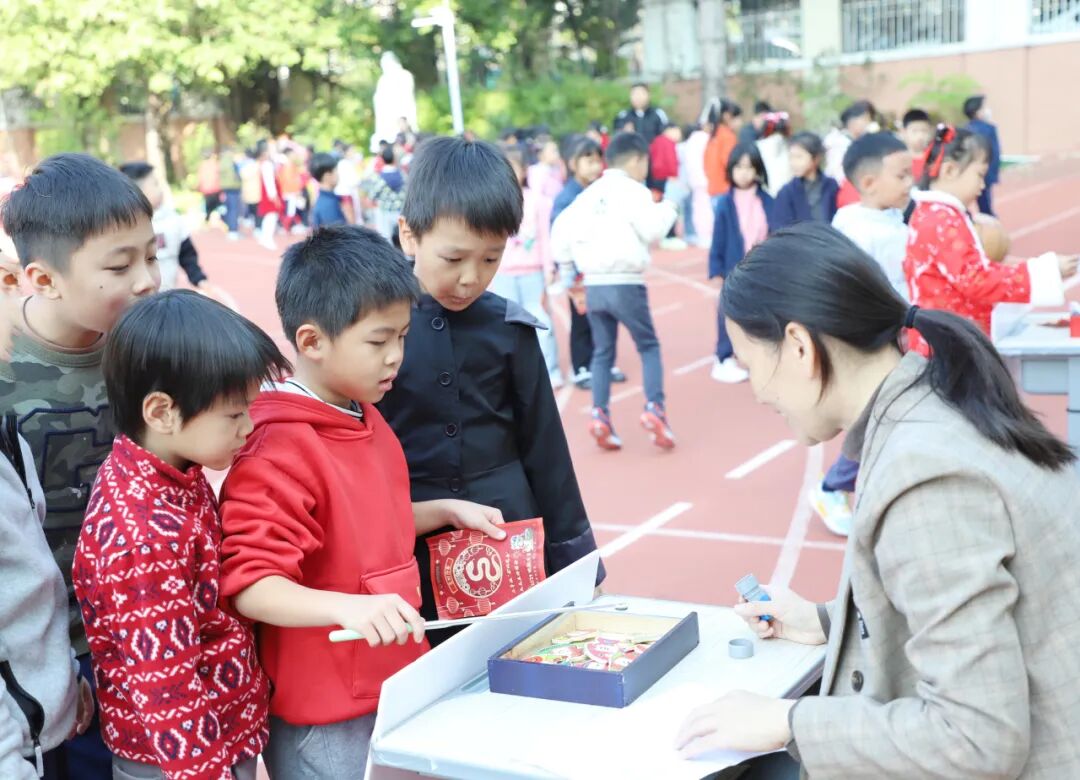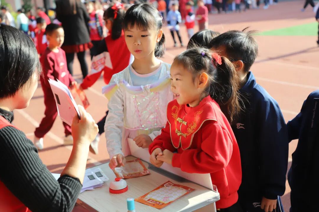 在游园过程中,学生们每完成一个项目即可获得一枚“福”字章。他们兴奋地展示游园卡和满满的“福”字章,脸上洋溢着满足和自豪的笑容。活动结束后,学生们回到班级,用“福”字章兑换奖品,整个校园都充满欢声笑语。