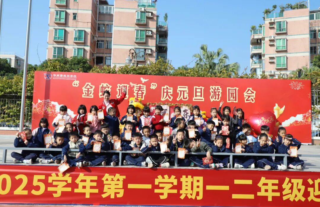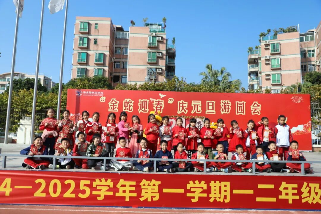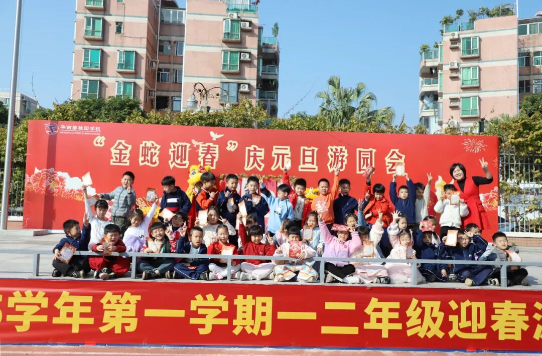 12月31日,华南碧桂园学校小学部沐浴在冬日的暖阳下,操场上洋溢着浓厚的节日氛围。一场别开生面的迎元旦“金蛇迎春”新春游园会暨一、二年级期末学业水平综合测评活动在此隆重举行。本次活动旨在探索“双减”政策下学校教育教学的新路径,通过开放式的表现性评价,让学生在轻松愉快的氛围中感受学习的乐趣,体验成功的喜悦。