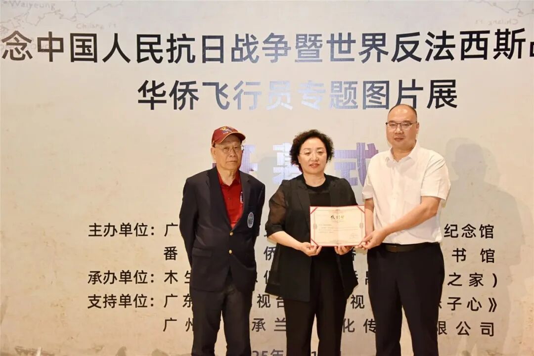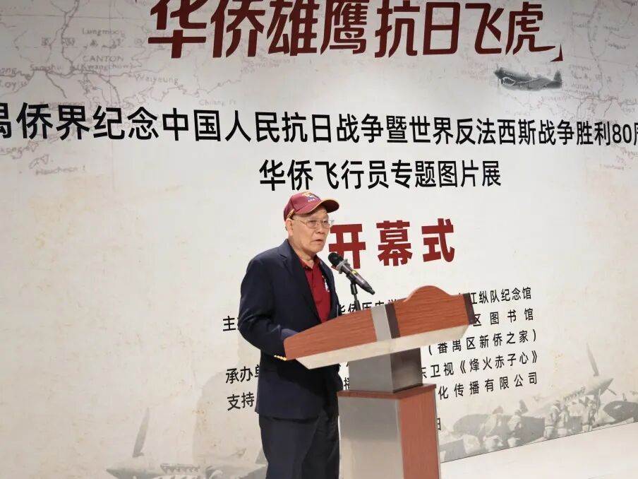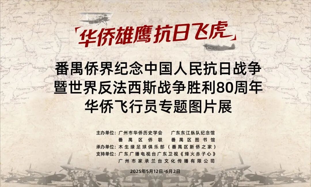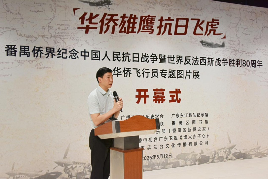 2025年5月12日,由广州市华侨历史学会、广东东江纵队纪念馆、番禺区侨联、番禺区图书馆联合主办的“华侨雄鹰 抗日飞虎”——番禺侨界纪念中国人民抗日战争暨世界反法西斯战争胜利80周年华侨飞行员专题图片展在番禺图书馆负一层展览厅圆满开幕。