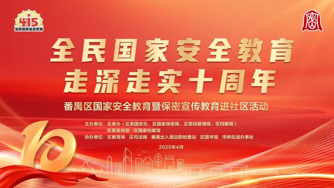 今年是国家安全法颁布施行10周年,4月15日是第十个全民国家安全教育日。为进一步增强全民国家安全意识,汇聚起维护国家安全的强大力量,4月15日至5月16日,区委办(区委国安办、区国家保密局、区密码管理局、区档案局)联合区委宣传部、区国家档案馆、区教育局、区司法局、番禺出入境边防检查站、区图书馆、市桥街道办事处在区图书馆推出“全民国家安全教育,走深走实十周年”专题展览,深入学习贯彻总体国家安全观,宣传普及重点领域国家安全及国家安全法律知识,并结合典型案例开展国家安全警示教育,欢迎大家参观学习并提出宝贵意见。