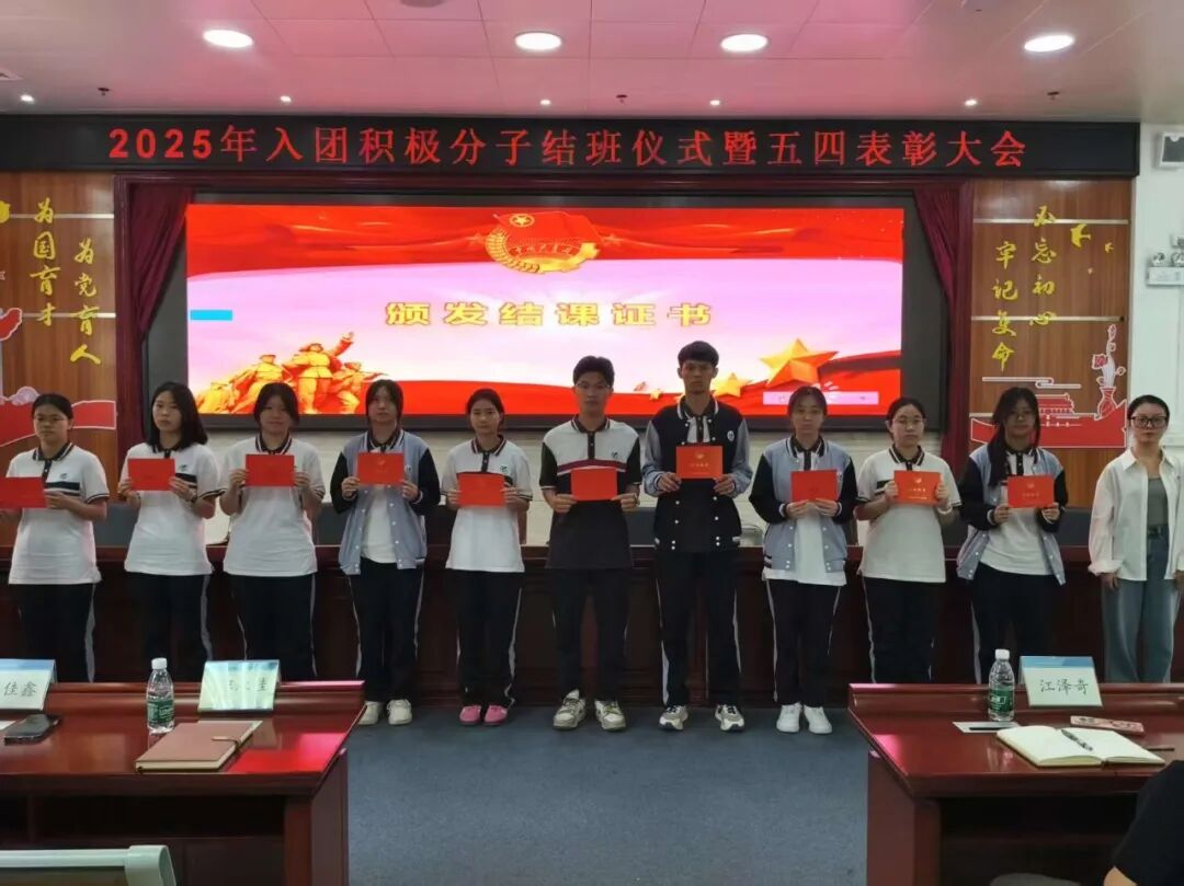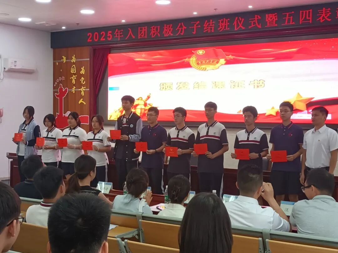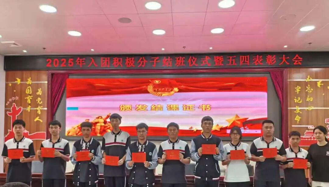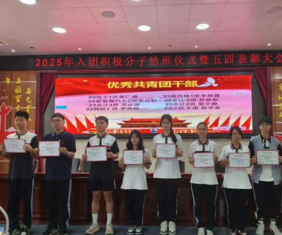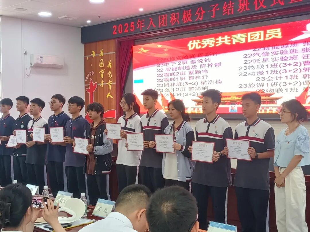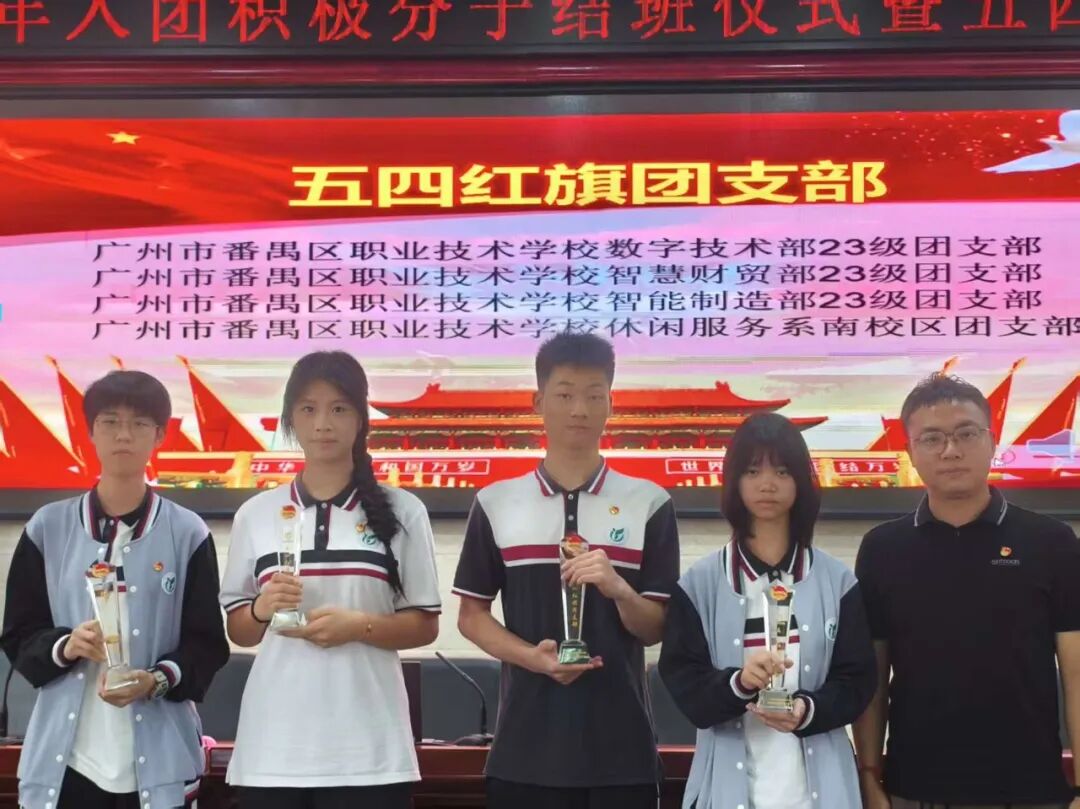 以青春之名,赴时代之约!2025年5月13日番禺职校2025年入团积极分子结课仪式暨五四表彰大会于实训楼一楼报告厅圆满落幕。