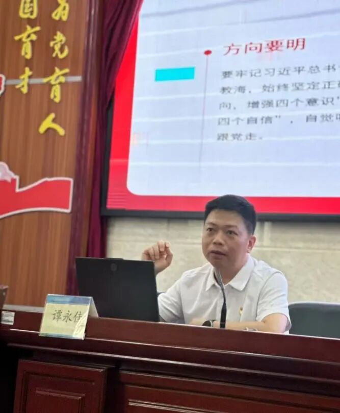 在结业仪式上,学校党委委员、学生管理部谭永佳部长为我们带来了一节《建功新时代,青春跟党走》微党课。