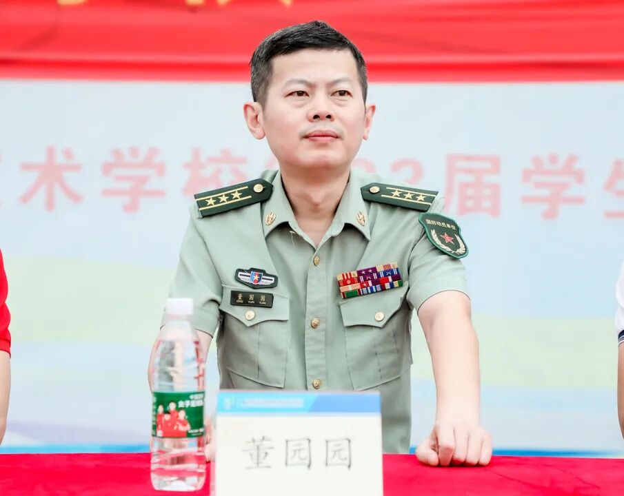 学校领导站在主席台上亲切地向新生问好,全体受训学生以饱满的精神状态接受检阅,