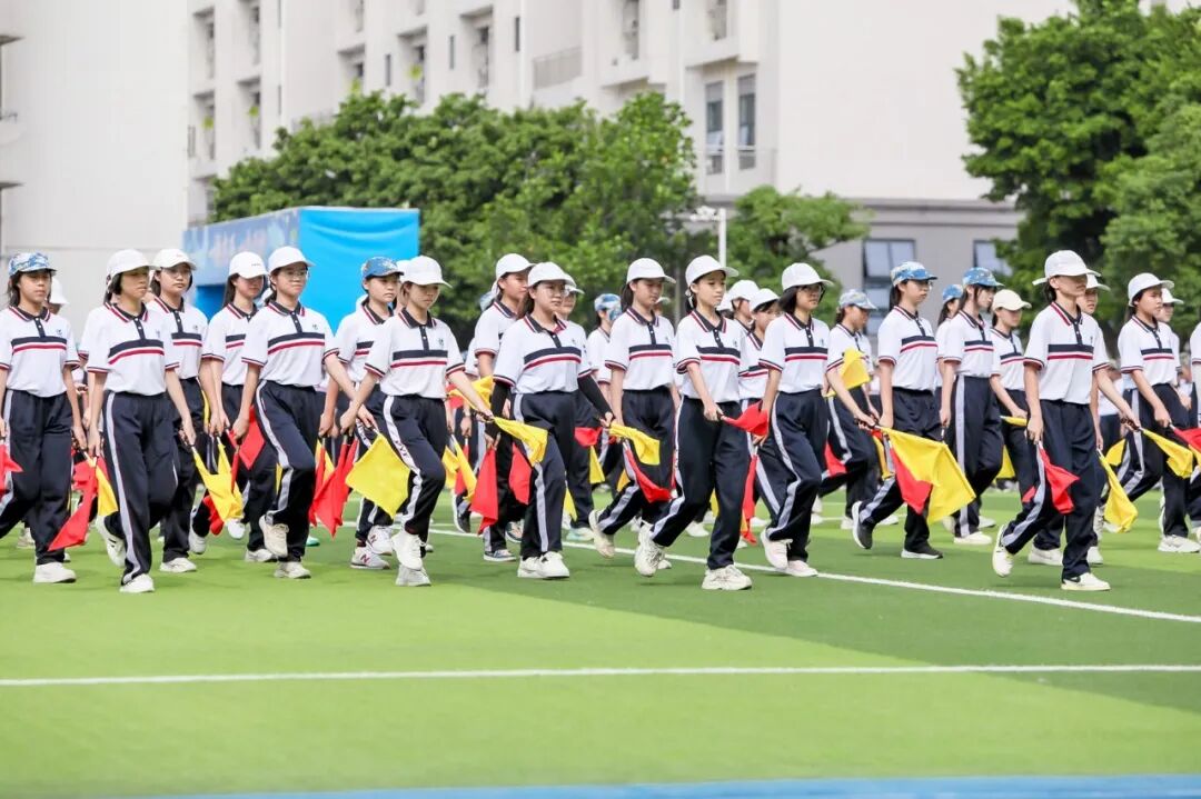 番禺职校于九月十四日上午,在南校区操场隆重举行了2024级新生军训汇演。在庄严的升旗仪式中,在雄壮的国歌声中,五星红旗缓缓升起,全体人员庄严肃立,面向国旗行注目礼。