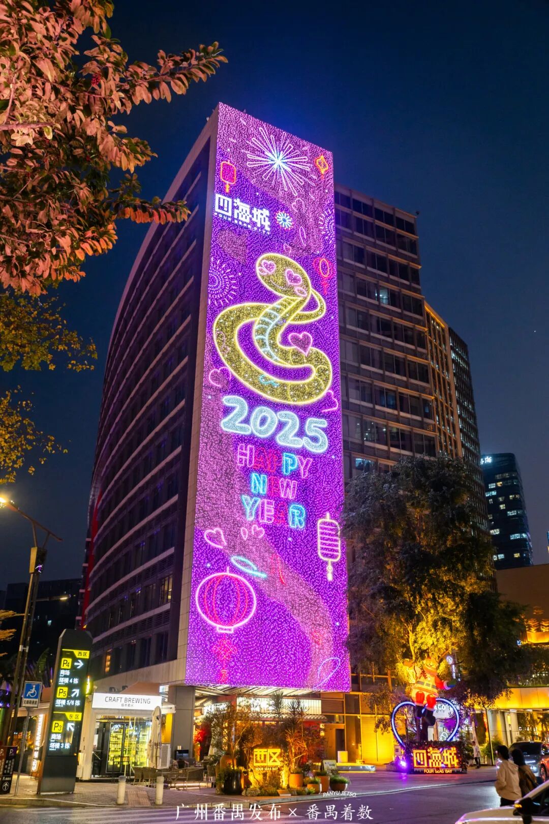 番禺四海城是拍照打卡的天堂!这里有独特的灯光装饰,如蛇年灯画,还有情绪稳定的卡皮巴拉,来这里随便一拍,能秒出大片!