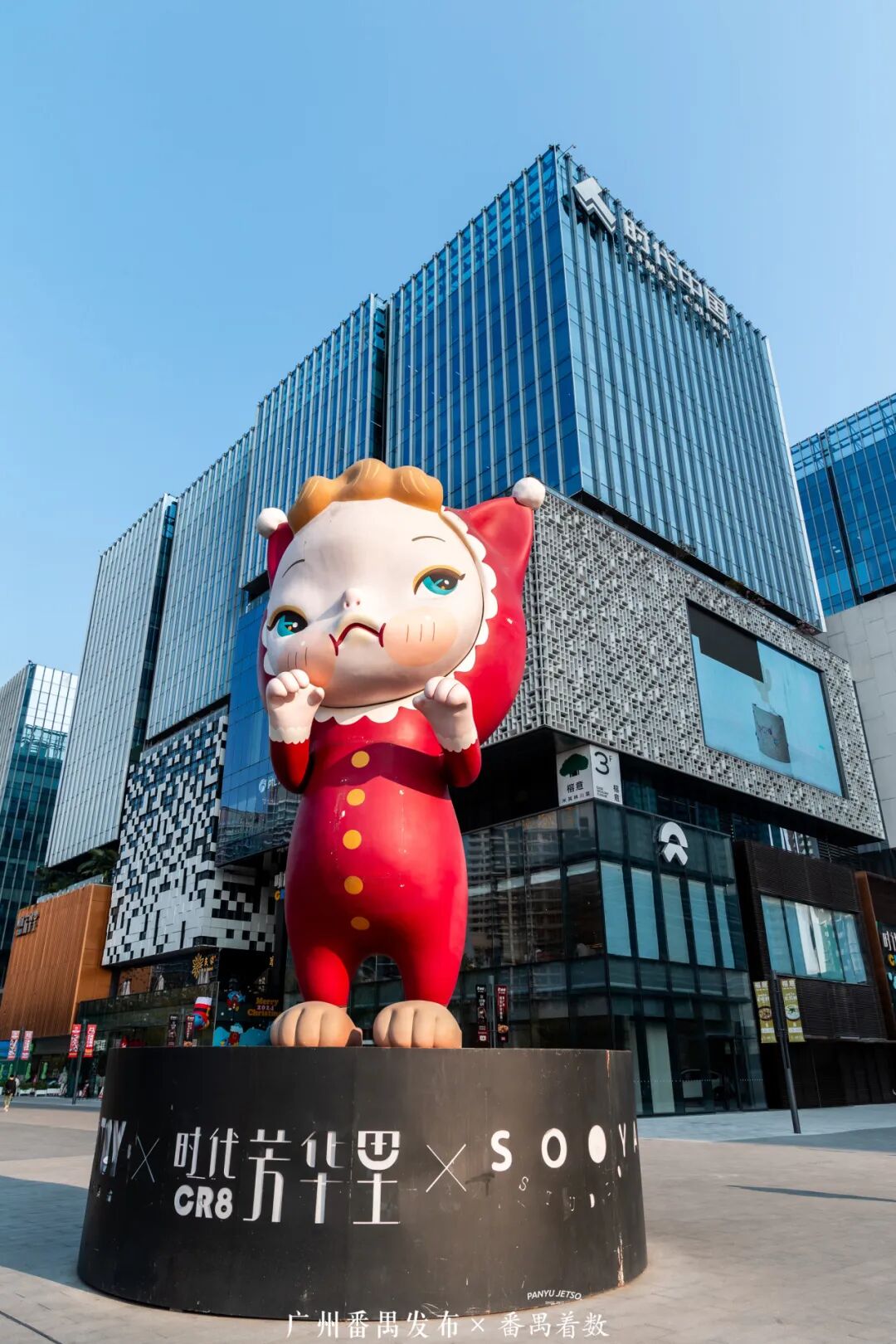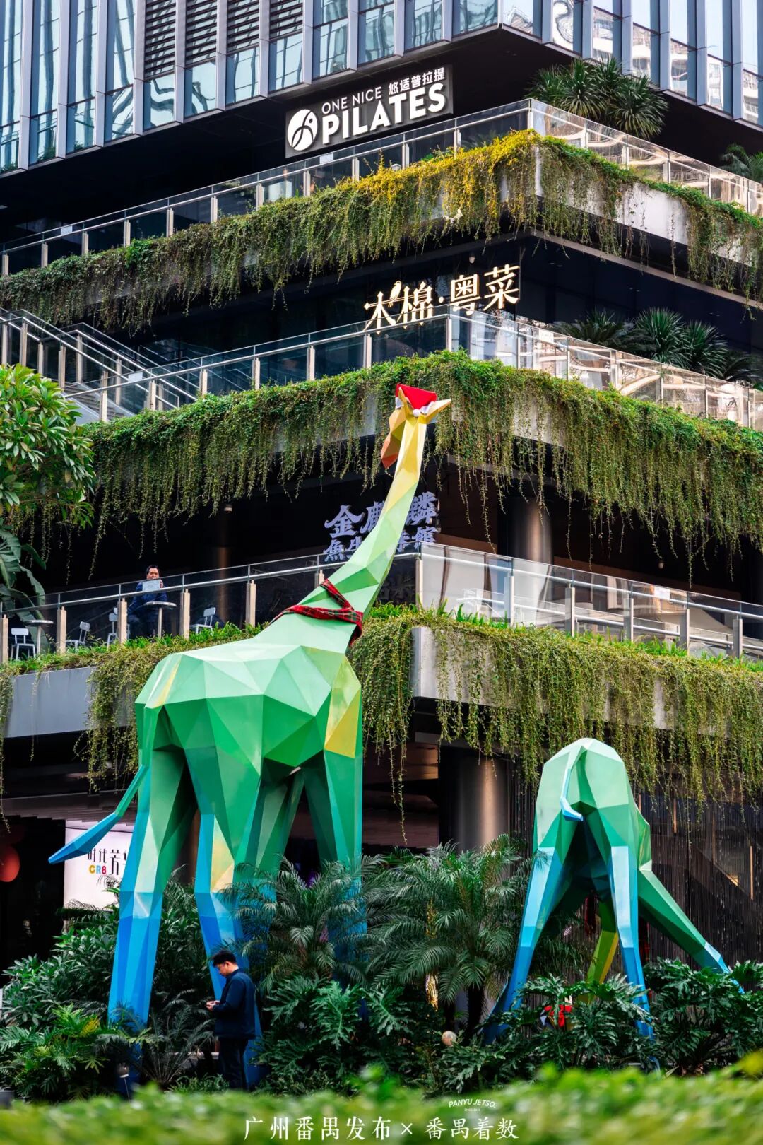 商场门口矗立着潮玩艺术家Sooya量身定制的10米巨型Ban形象雕塑;“叠翠谷”中,两只高大的长颈鹿艺术雕塑栩栩如生,随便一拍都超有感觉,出片率极高!