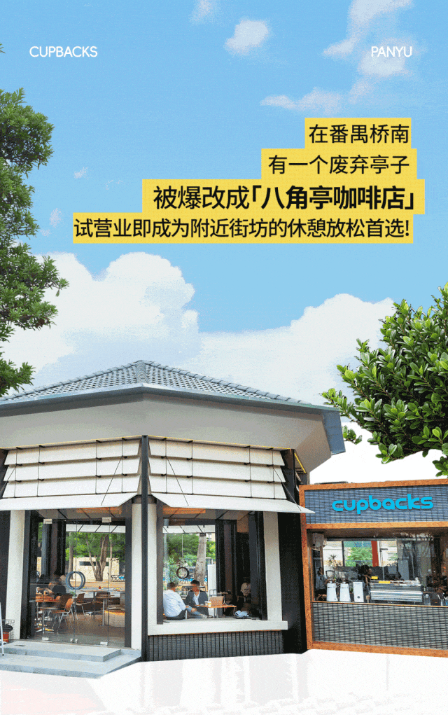 老板豪掷100万,把一个废弃亭子改造成氛围感十足的咖啡店「cupbacks·续杯咖啡」,延续亭子本身悠闲的属性,一举成为番禺热门休闲好去处。