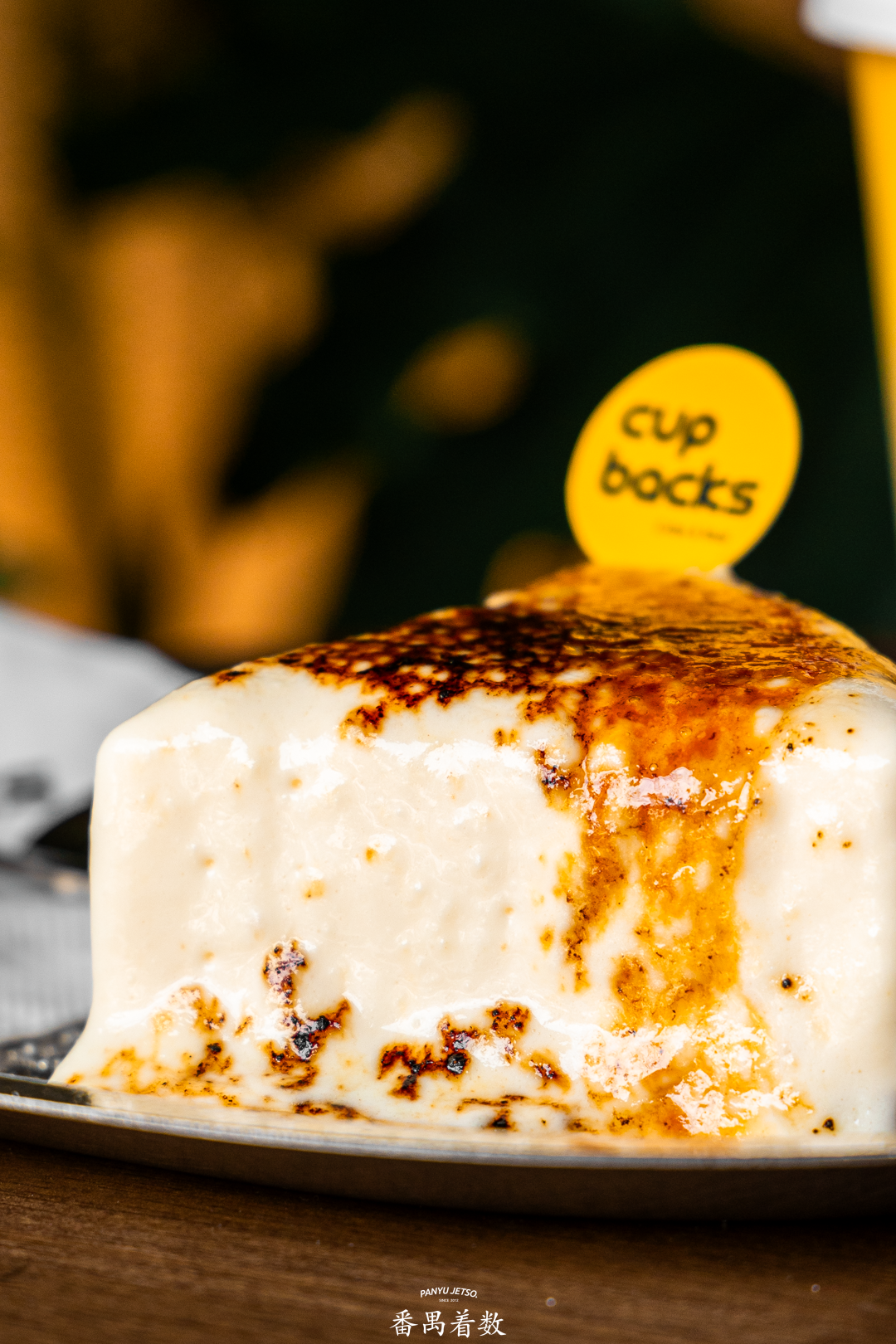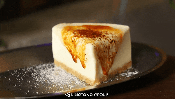 蛋糕是经过炙烧后形成一层诱人的焦糖面,轻轻挖一勺,先是焦糖的香甜酥脆,接着是豆腐芝士蛋糕的细腻绵密,豆香与芝士香相互交织,口感独特!要提醒大家,这美味可要尽快享用,不要错过最佳口感啦!