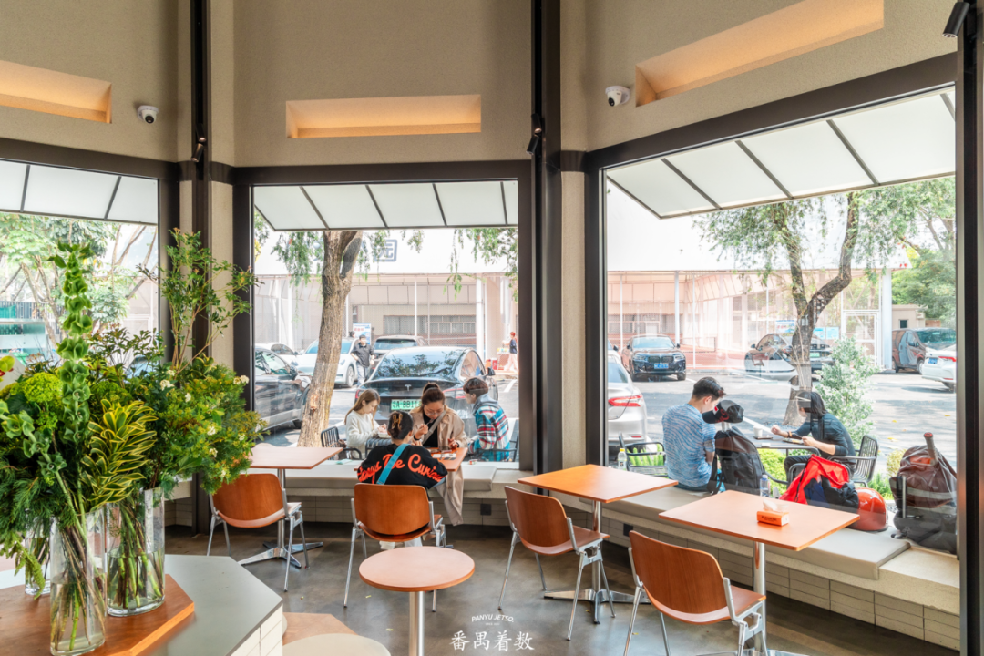 不仅如此,还有一处被绿意环抱的户外区域,坐在这里,点上一杯水牛奶咖啡,当阳光透过树叶洒在咖啡杯上,风一吹,连发丝都自带电影感!(拍照tips:下午4点光影,绝美!)