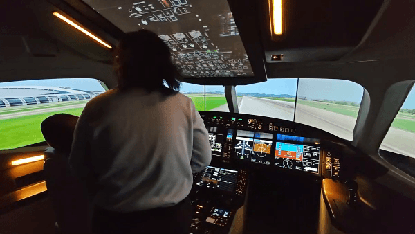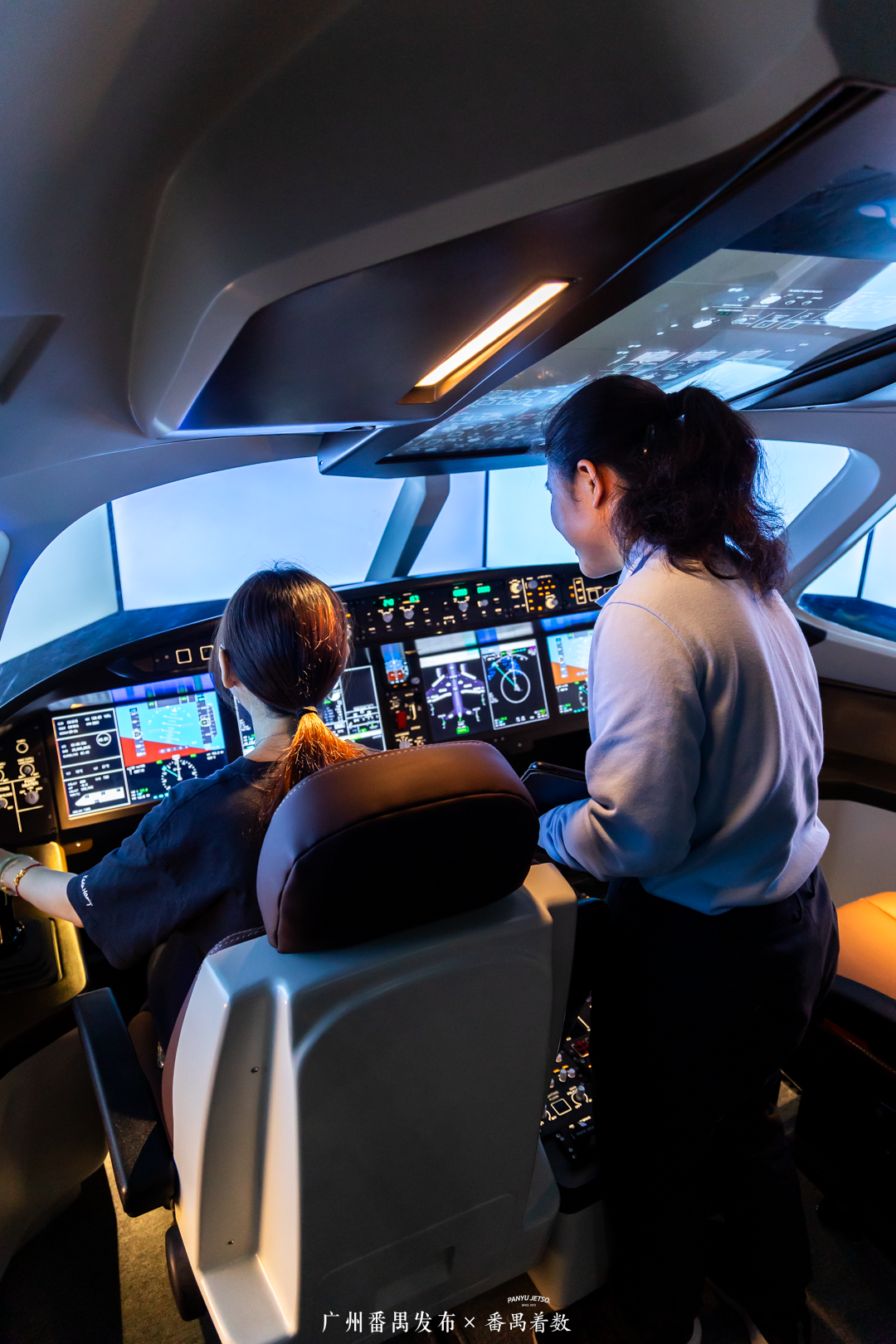 馆内另一不可错过的项目,当属1:1 还原的「C919 模拟驾驶舱」!坐进驾驶舱,握住操纵杆,仿佛真的成为了一名机长,体验飞机起飞、降落的刺激!