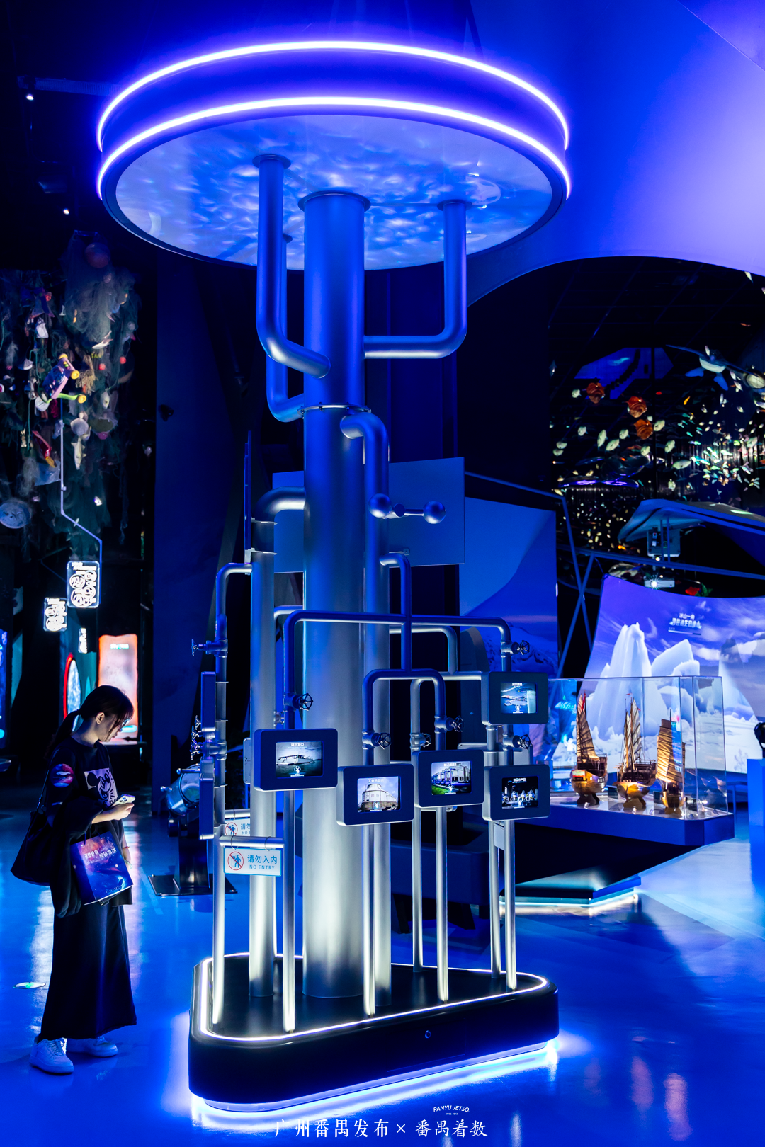 还有那巨型水族箱,融合了大型数字交互媒体与镜面无限反射手法,打造出一个沉浸式海洋秘境。步入其中,不仅能身临其境般进行一次海底探险,还能与虚拟海洋生物来一场超现实互动。
