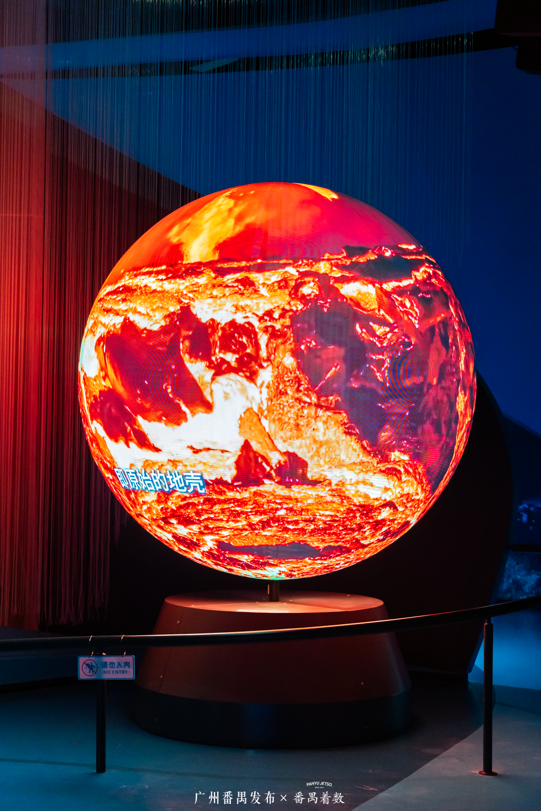 馆内设有模拟充满岩浆的地球场景,红色的光芒不断闪烁跳跃,展示着原始地壳的形态。