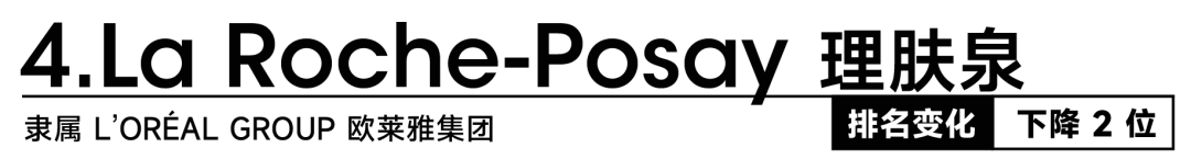 今年,理肤泉仍是前五名中唯一的药妆类护肤品牌。但尽管在消费者情感评分领域表现稳健,品牌排名仍下滑两位。