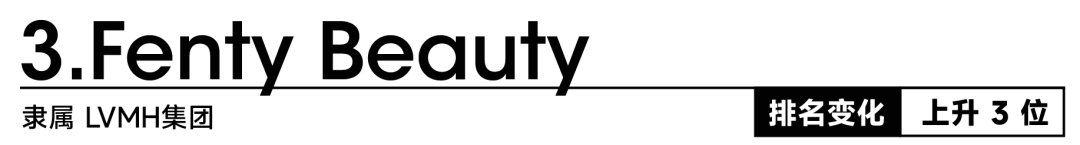 Fenty Beauty 从 2023 年第五位跃居今年美妆指数排名的季军,刷新品牌最佳成绩。