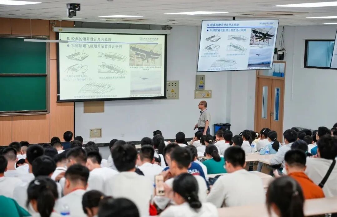16日,同学们参观了位列“985”、“211”、“双一流”重点建设高校的中央直属高校——北京航空航天大学。进入现代化校区,张华教授为同学们带来了“漫谈飞机设计中的空气动力学奥秘”专题讲座,详细讲解了翼刀、襟翼等蕴含空气动力学知识的设计细节,让同学们大饱眼福、获益匪浅。